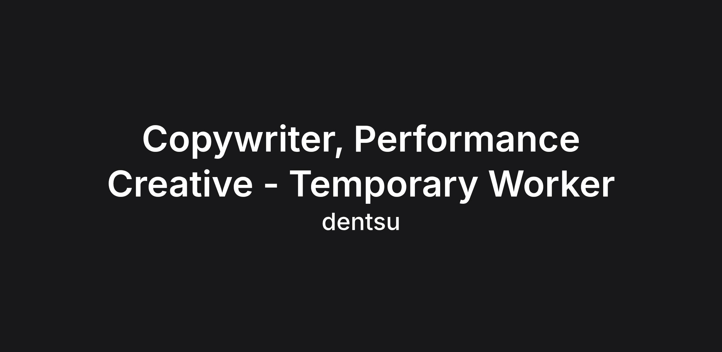 We're searching for a Part-Time, Temporary Copywriter to join our Performance Creative team. Reporting to the Creative Director, Performance Creative, you will create performance-driven work that supports digital and social direct response channels while satisfying the branding requirements of our clients.
