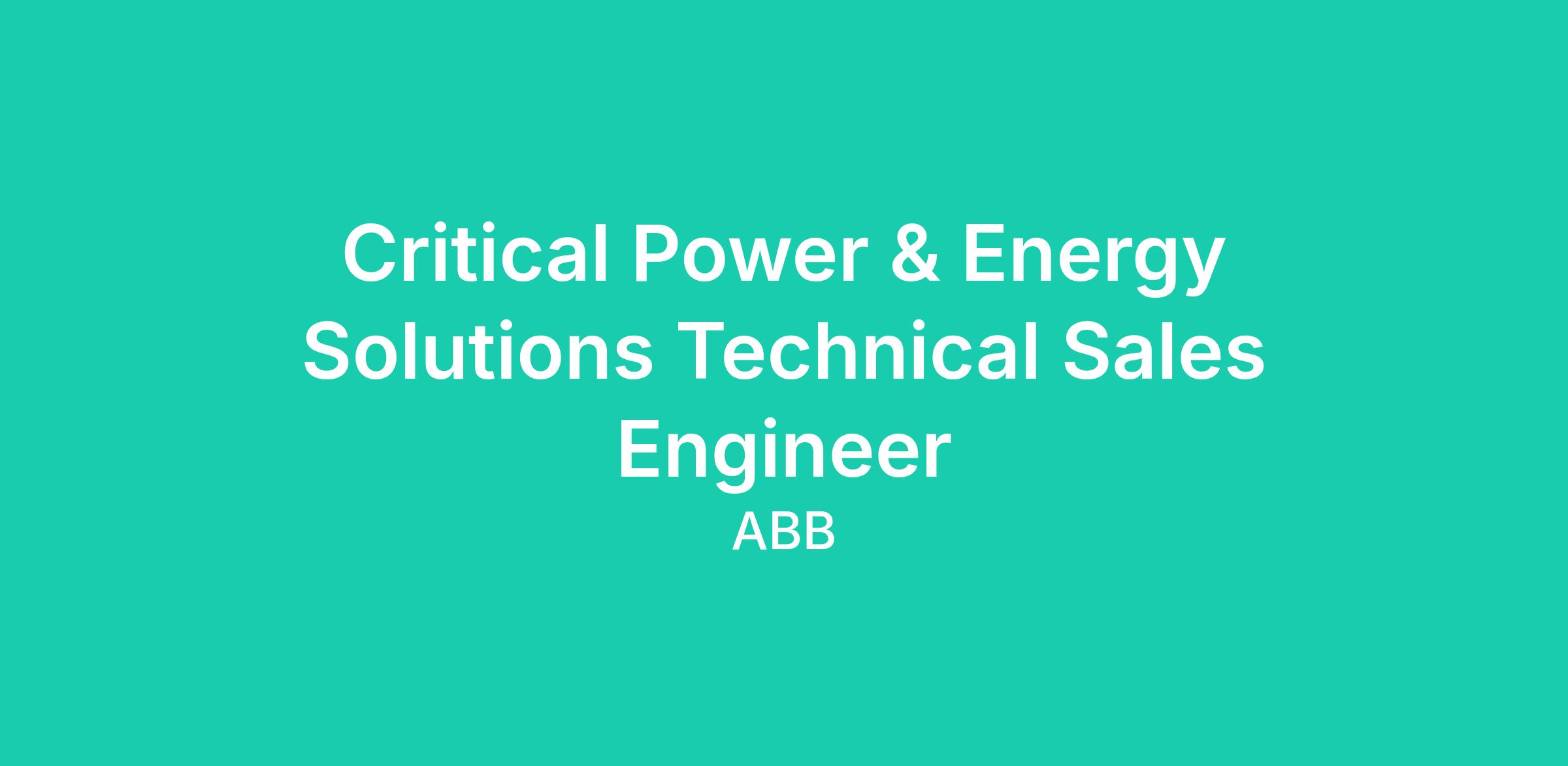The Critical Power Technical Sales Engineer is a customer-facing technical expert responsible for supporting ABB’s sales teams in driving adoption of ABB critical power technologies across hyperscale, colocation, Neocloud and enterprise data center markets. This role combines deep electrical engineering knowledge with strong commercial acumen to guide customers, channel partners, and design firms toward optimal solutions using ABB’s portfolio of UPS systems, power distribution solutions, switchgear, STSs, e-Houses, HVAC and emerging energy storage technologies.