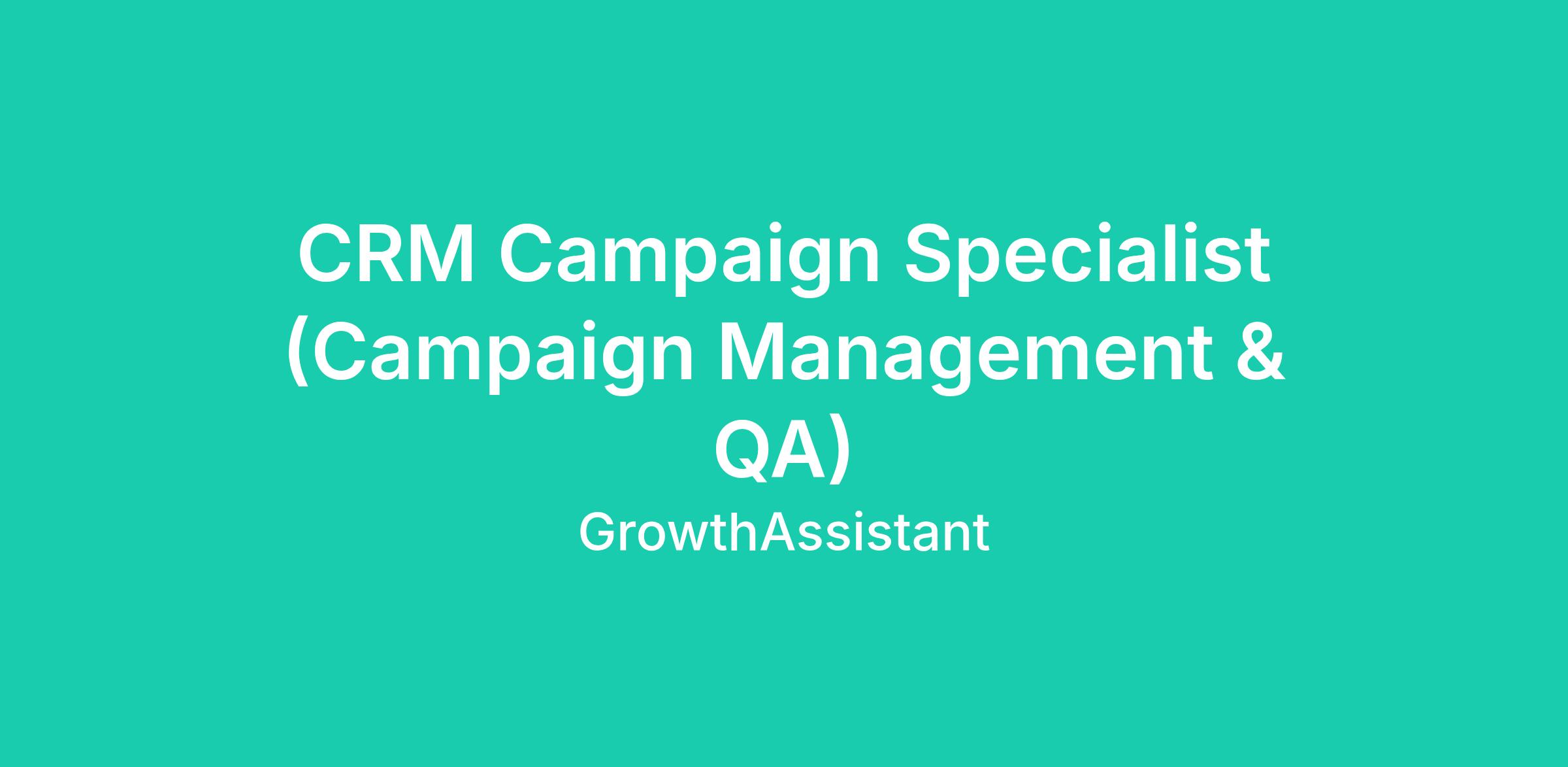 🚀 CRM Campaign Specialist (QA & Campaign Management)