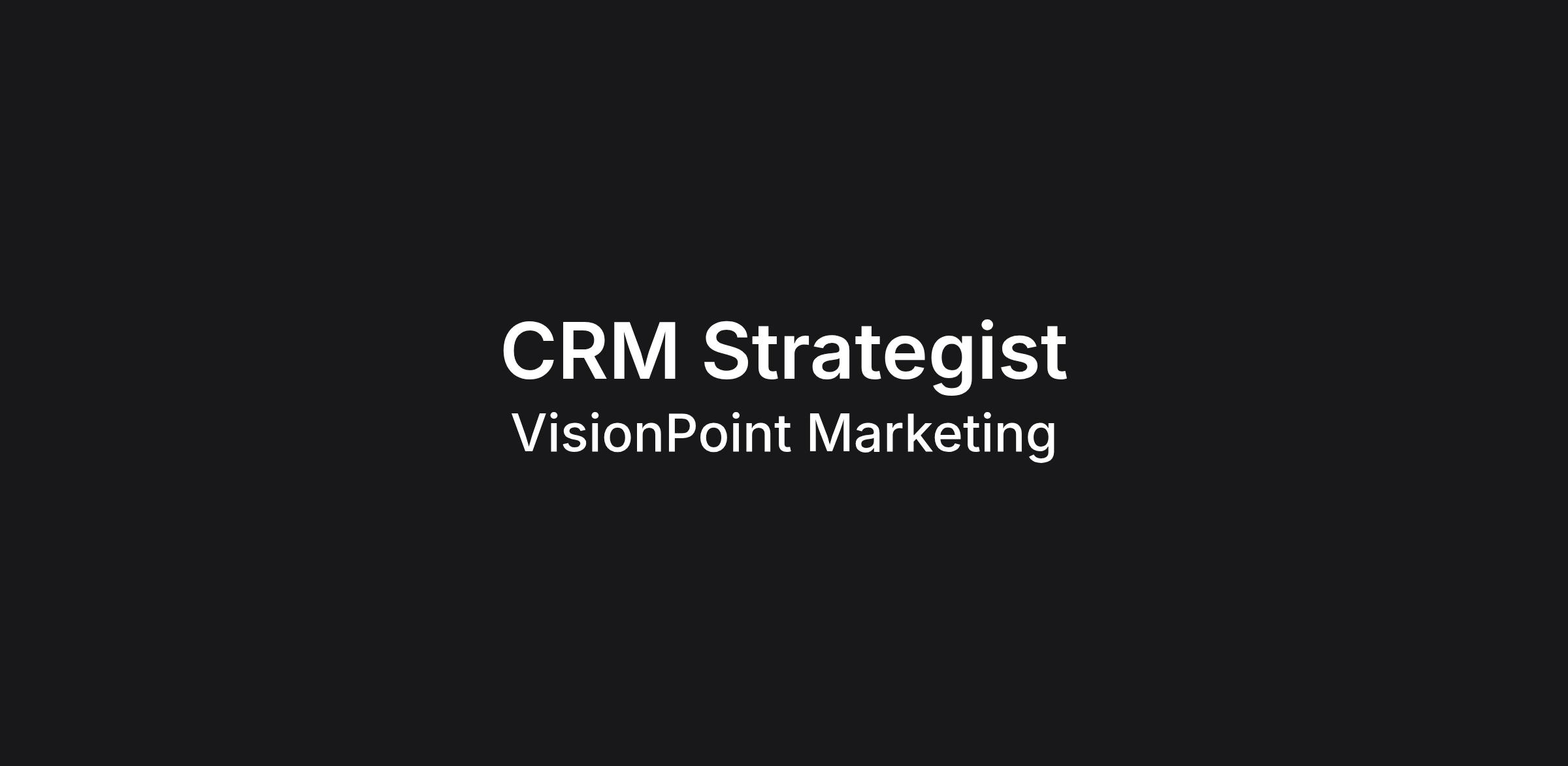 As a CRM Strategist at VisionPoint, you’ll author high-level, full-service CRM strategies that guide and support our higher education clients to achieve their enrollment goals. You’ll work collaboratively with marketing strategists, research analysts, account directors, and project managers in direct consultation with our clients to develop CRM strategy and ensure effective implementation. CRM projects will often require you to exude passion for in-depth, creative approaches to develop innovative, data-driven strategies, and achieve alignment with client objectives and goals. Your work will achieve a broad range of CRM technical setup, implementation and evaluative goals. You will play a proactive role in creating work plans with a clear, phased approach to task completion while identifying gaps, risks, and barriers as you manage client expectations. Overall, you’ll ensure VisionPoint's business success by contributing to the pursuit of new business opportunities and expanding existing business within CRM strategy and implementation.