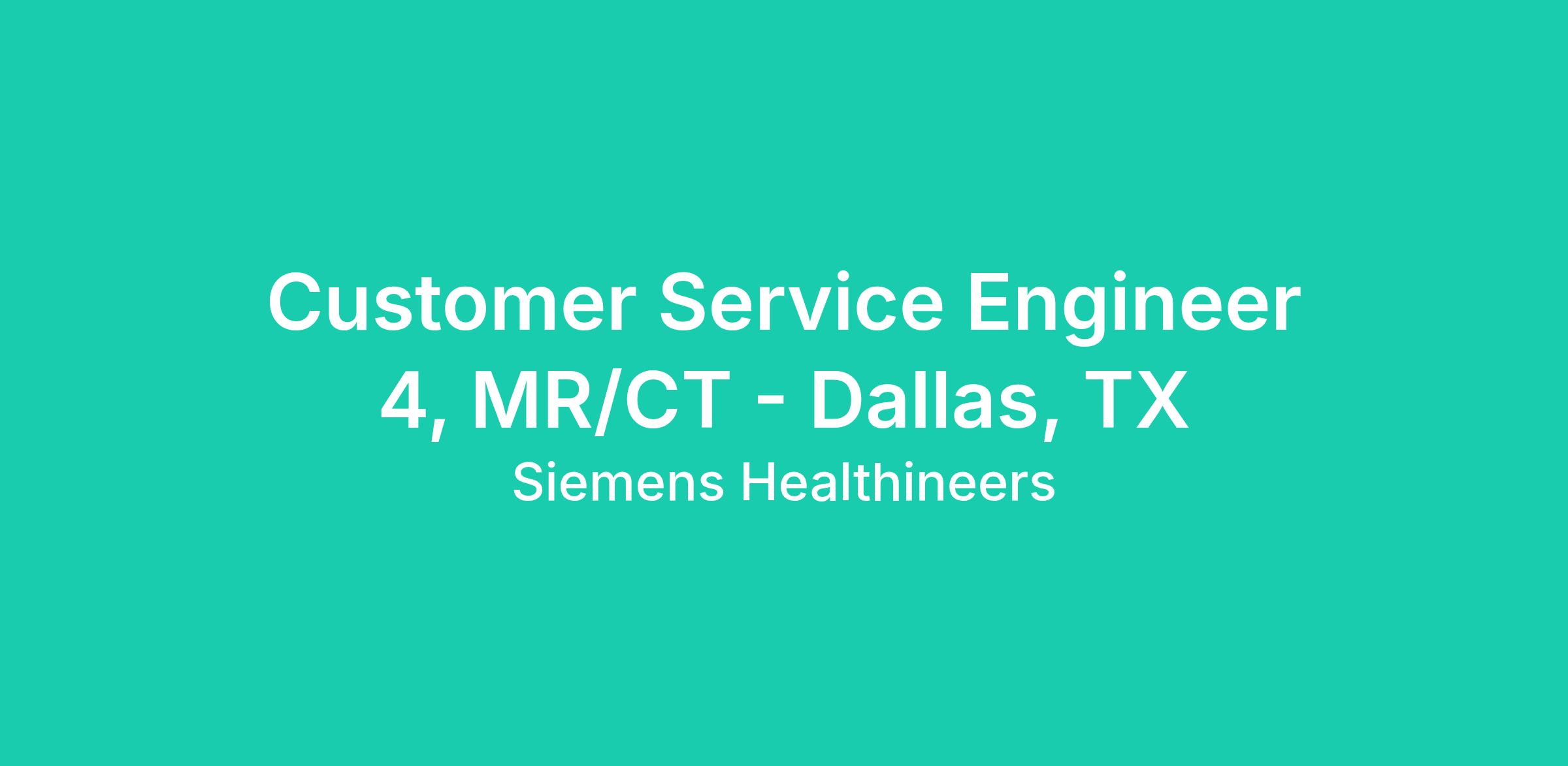 You will be servicing MR/CT Imaging Equipment in the Dallas, TX area. Customer Service Engineer Level based on prior experience.