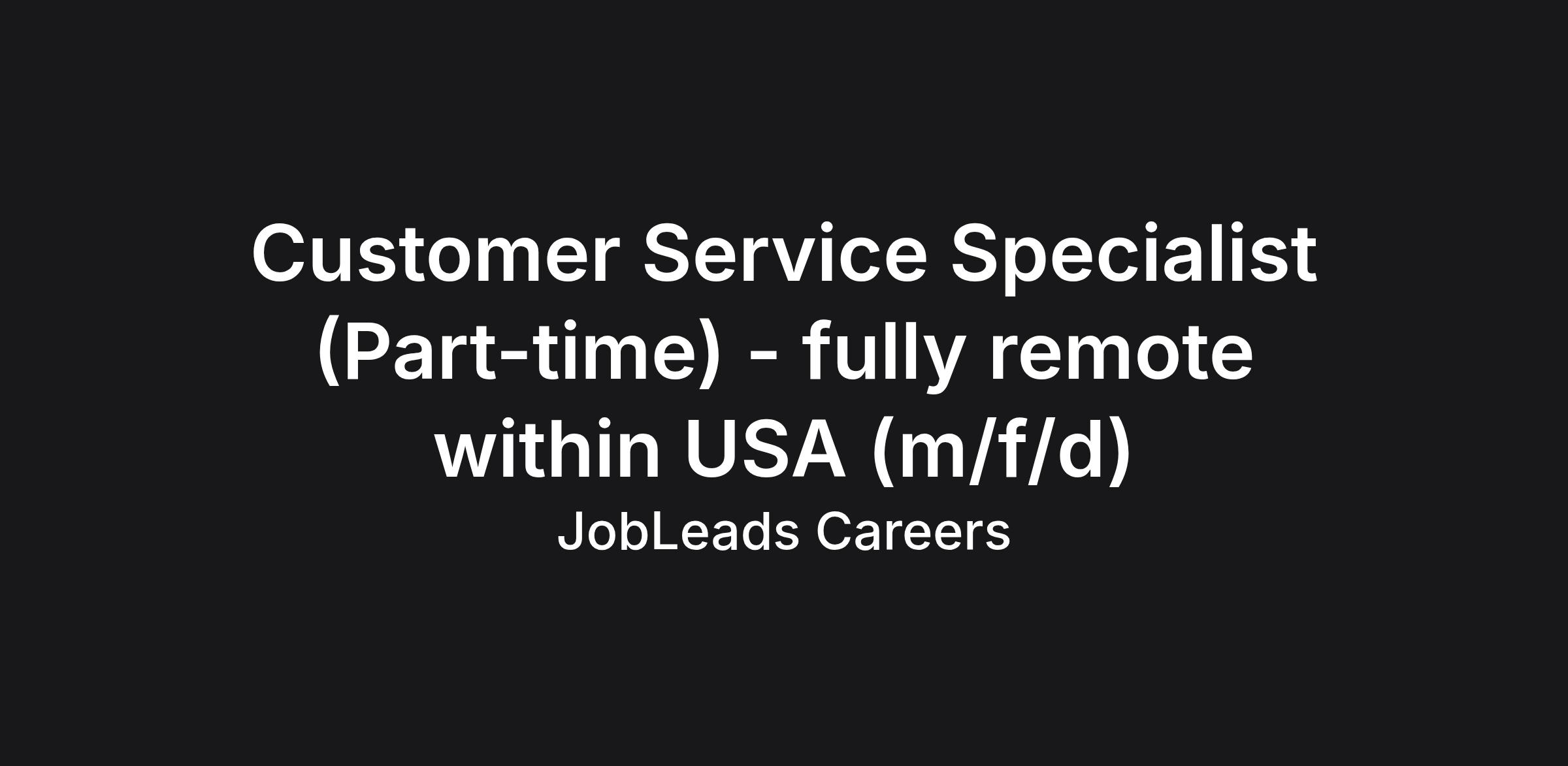 Customer Service Specialist (Part-time) - fully remote within USA (m/f/d)