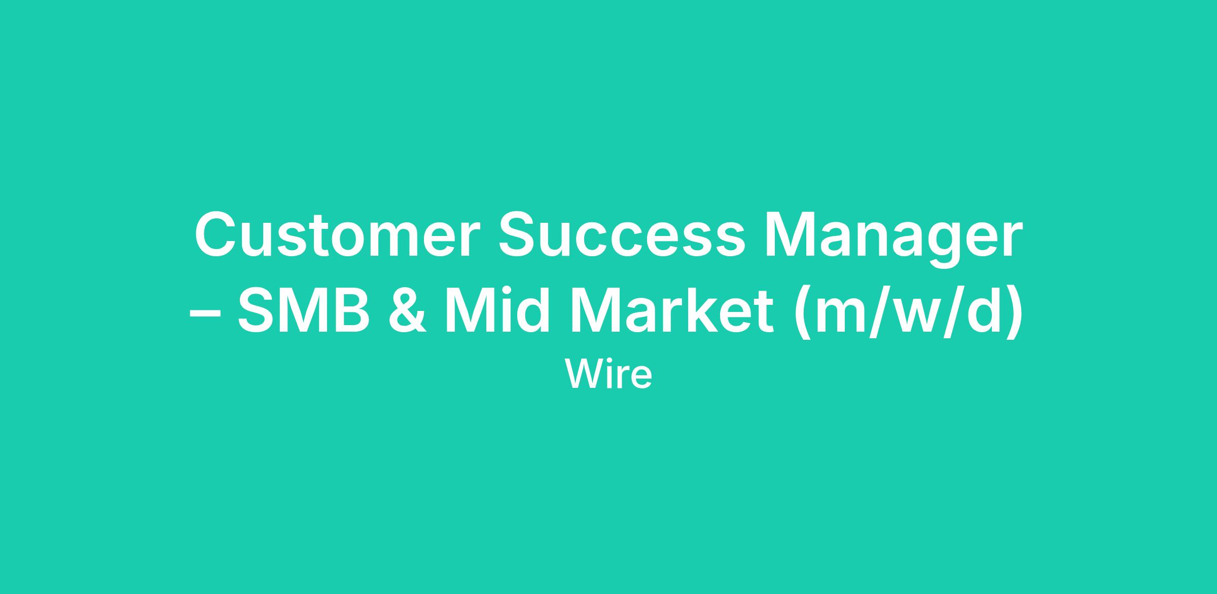 Als Customer Success Manager übernimmst Du eine zentrale Rolle in der Betreuung und Weiterentwicklung unserer Kunden in den Segmenten SMB, Mid Market und Corporate. Du stellst sicher, dass unsere Kunden den maximalen Mehrwert aus unseren sicheren Kommunikationslösungen ziehen und Wire erfolgreich in ihren Arbeitsalltag integrieren.