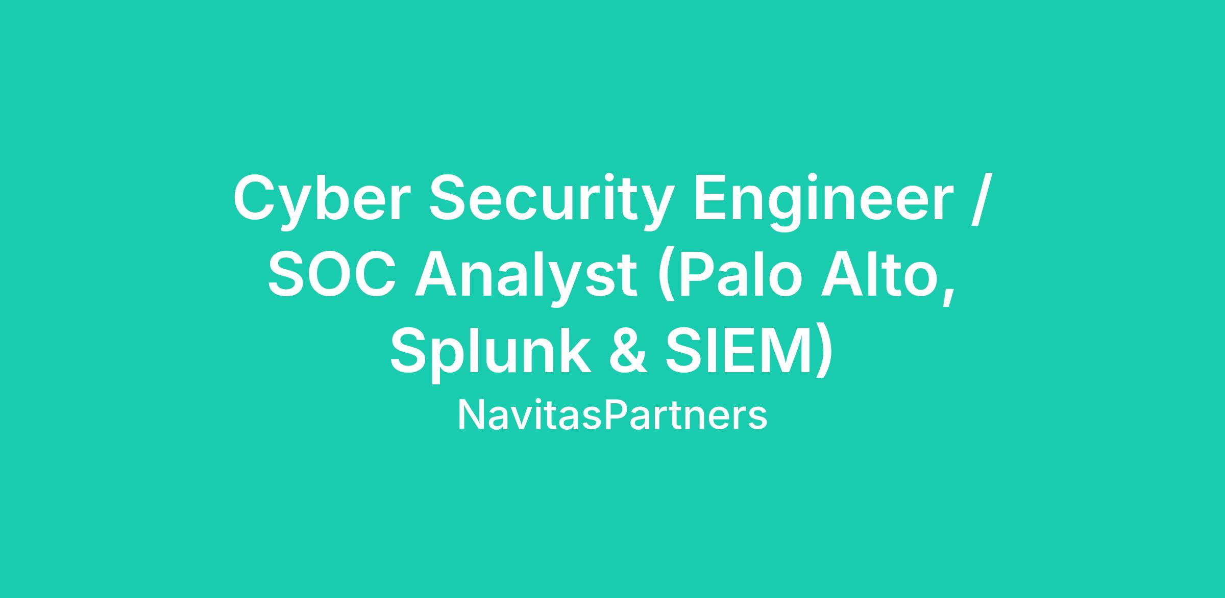 "Navitas Partners, LLC" is seeking a highly motivated Cyber Security Engineer / SOC Analyst with strong hands-on expertise in Palo Alto firewalls, Splunk, and SIEM platforms. This role is responsible for monitoring, detecting, analyzing, and responding to security threats while ensuring the overall protection and resilience of enterprise systems and networks.
