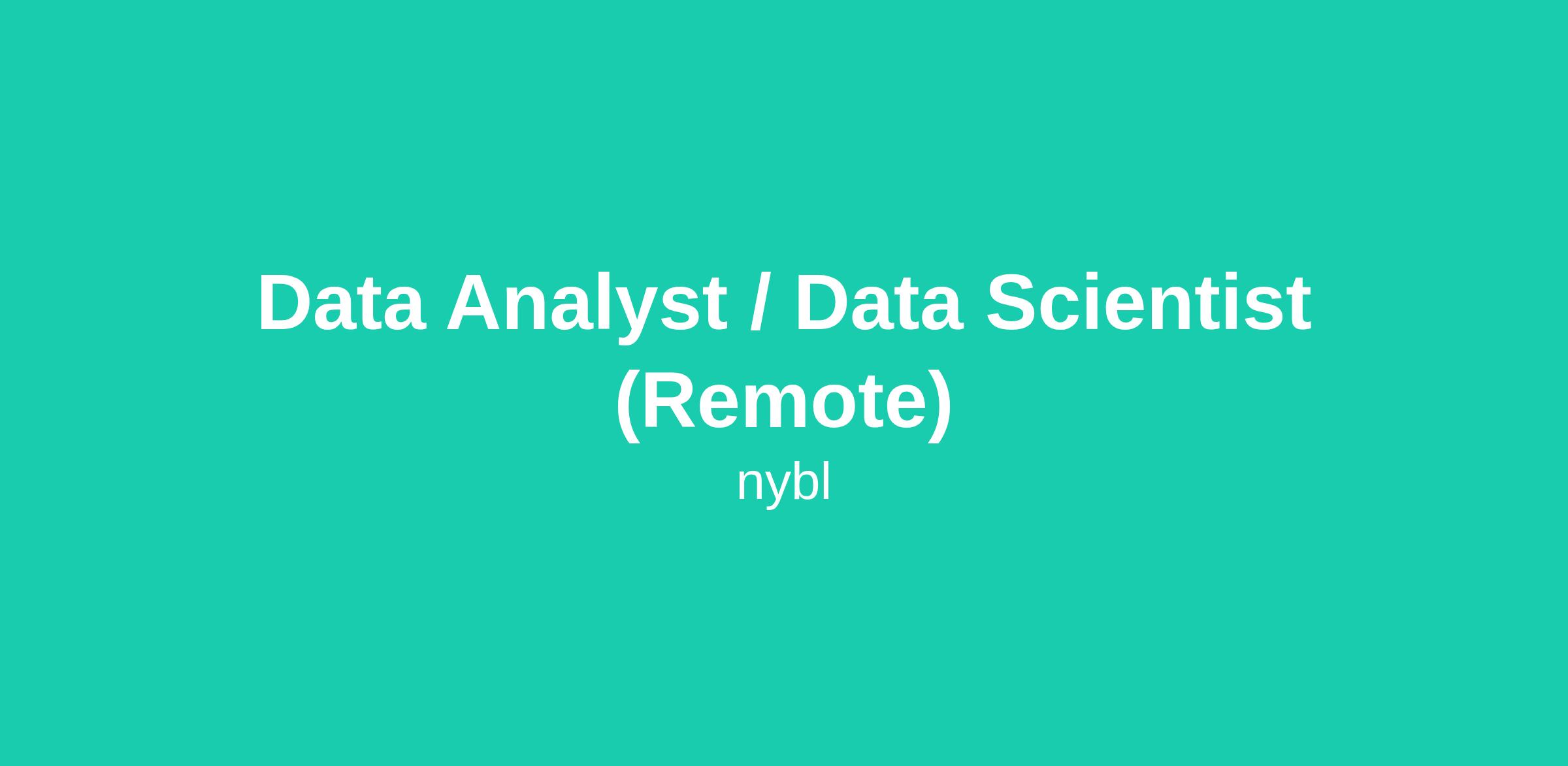 Data Analyst / Data Scientist (Remote)