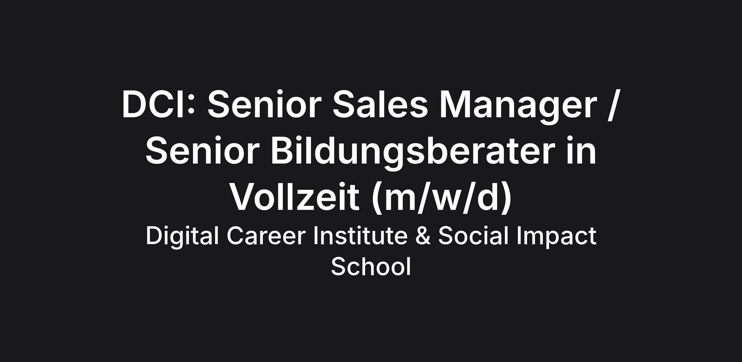 DCI: Senior Sales Manager / Senior Bildungsberater in Vollzeit (m/w/d)