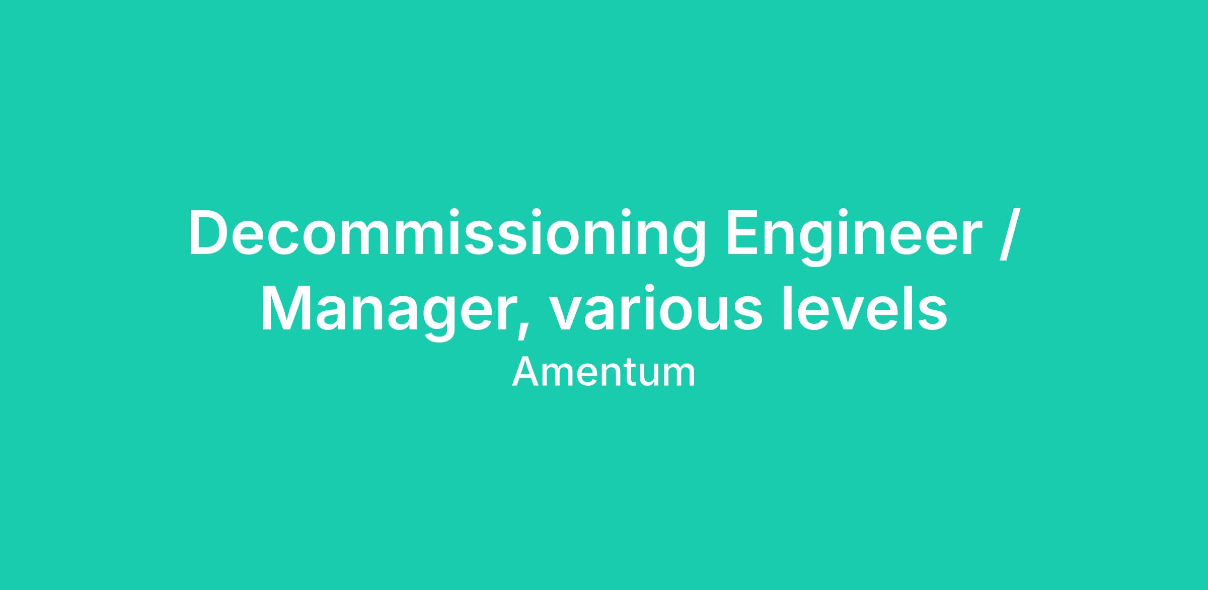 We are seeking Decommissioning Engineers / Managers across multiple experience levels to support the planning, coordination and technical delivery of complex projects.
