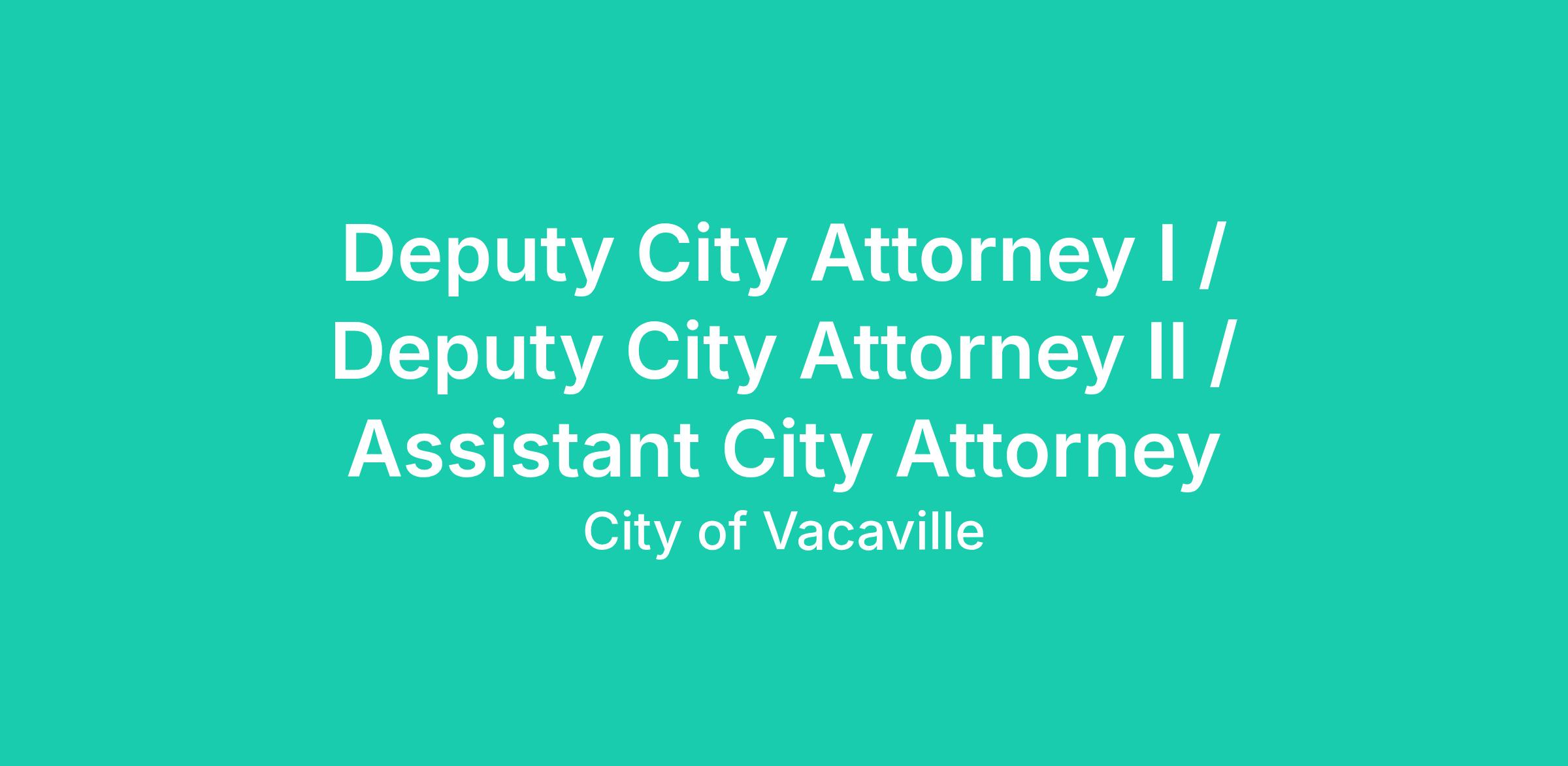 The City of Vacaville is seeking a talented and motivated attorney to join the City Attorney’s Office. The City is recruiting for the flexibly staffed classification series of Deputy City Attorney I, Deputy City Attorney II, or Assistant City Attorney, with final placement determined based on the selected candidate’s qualifications, experience, and demonstrated expertise.