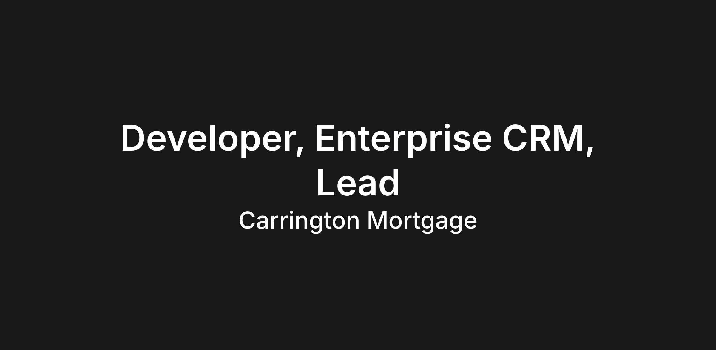 Responsible for collaborating with the business unit leaders, business partners and IT peers to provide expert technical support in the strategic planning, design, development, implementation, and ongoing administration support and growth of Carrington’s enterprise CRM solution. Perform all duties in accordance with the company’s policies and procedures, all US state and federal laws and regulations, wherein the company operates. The target pay range for this position is $117,000 to $150,000 .