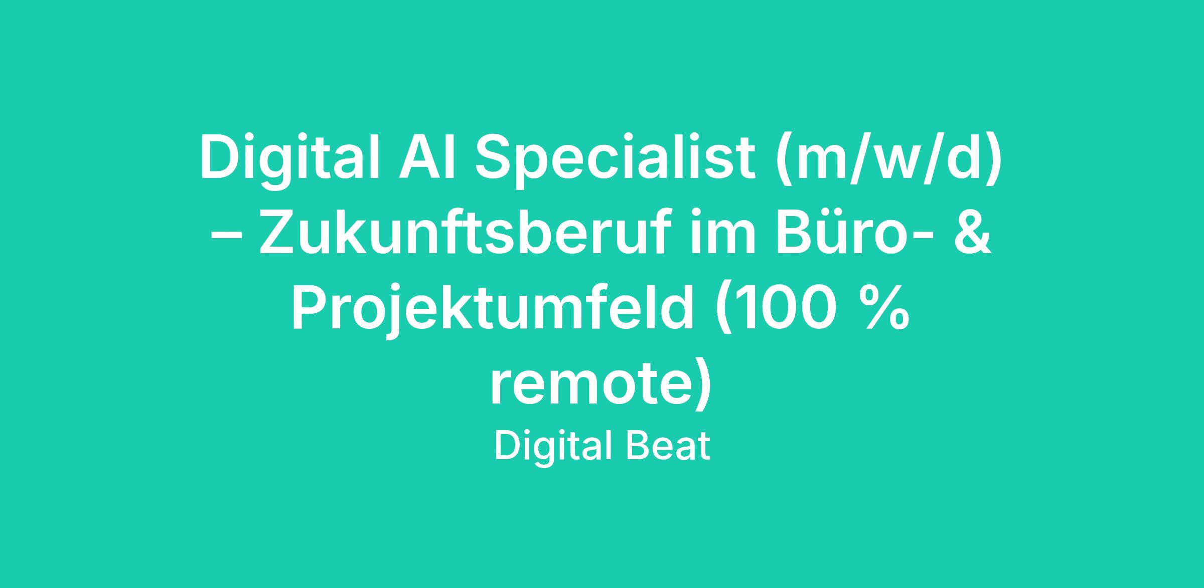 Digital Beat ist ein hervorragender Weiterbildungsanbieter, der dir die Möglichkeit bietet, in einem dynamischen und zukunftsorientierten Bereich wie Künstliche Intelligenz zu arbeiten. Mit flexiblen, 100% remote Weiterbildungsmöglichkeiten und persönlicher Begleitung fördern wir deine berufliche Entwicklung und bieten dir Zugang zu praxisnahen Projekten sowie wertvollen Zertifikaten. Unsere offene und unterstützende Unternehmenskultur sorgt dafür, dass du nicht nur fachlich, sondern auch persönlich wachsen kannst.
