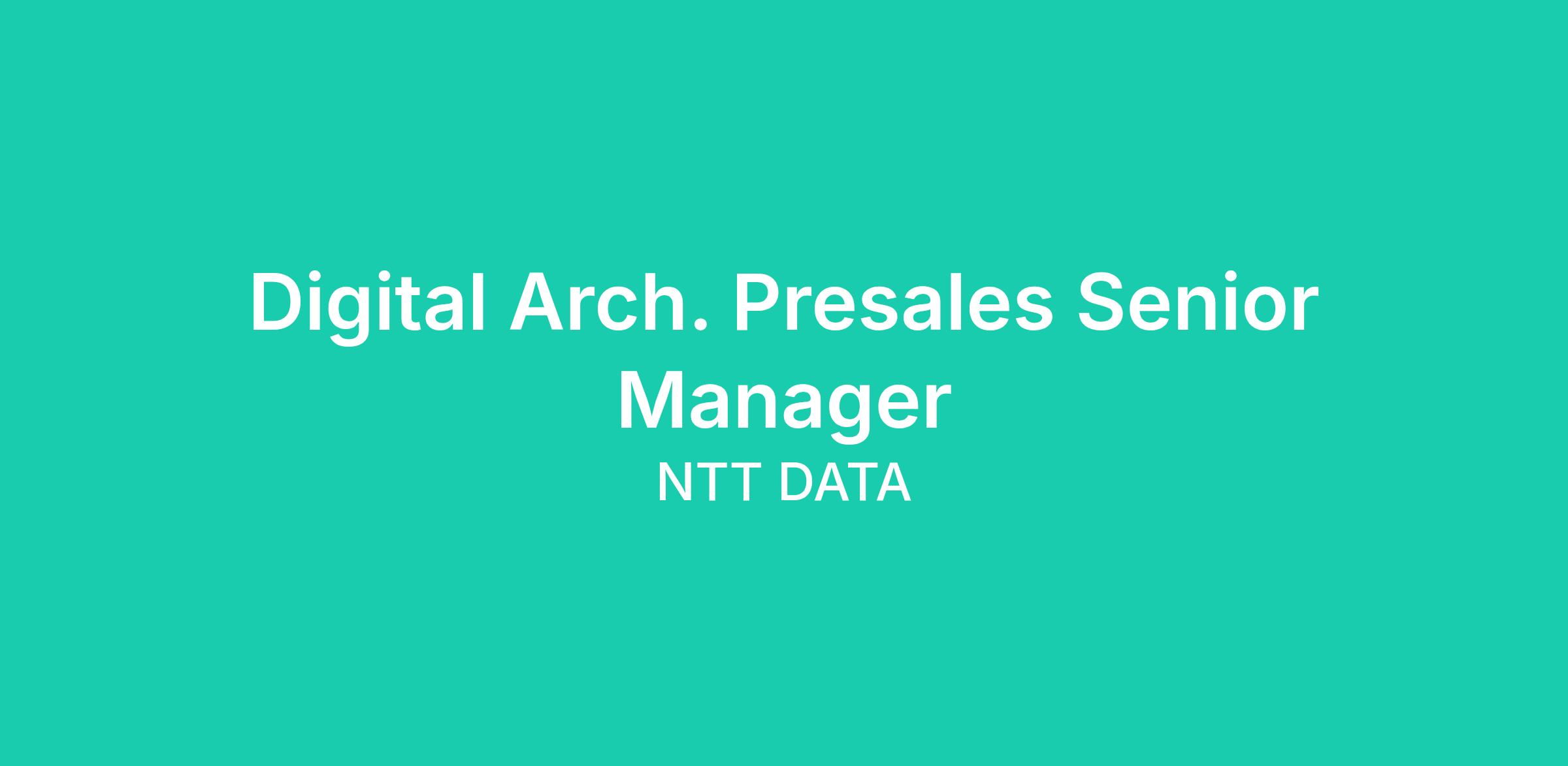 We are currently seeking a Digital Arch. Presales Senior Manager to join our team in Plano, Texas (US-TX), United States (US).