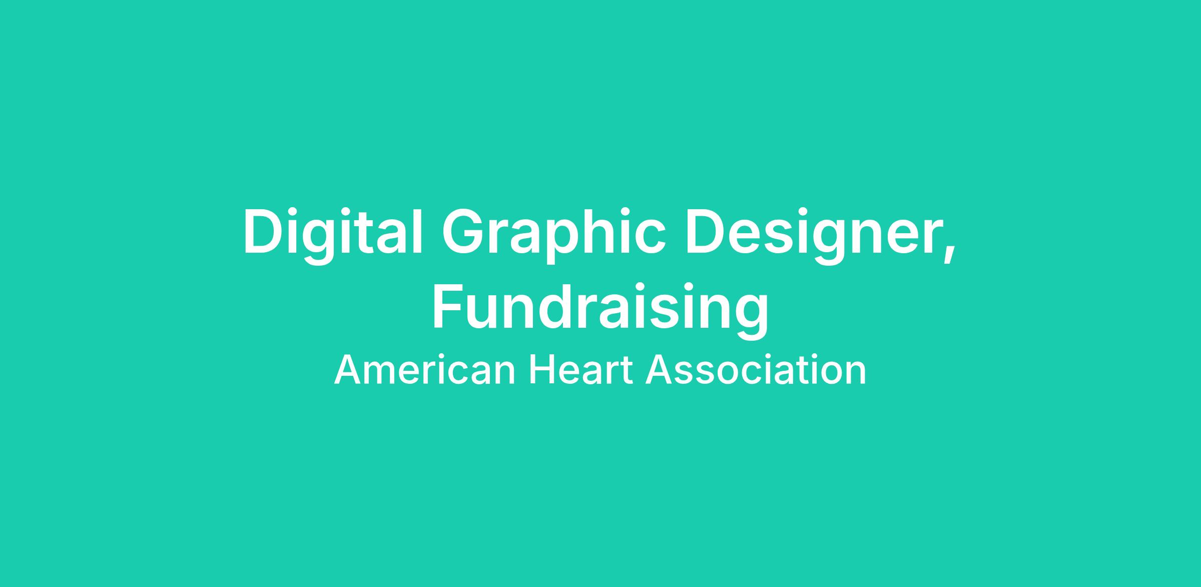 The American Heart Association has an opportunity for a Digital Designer Fundraising, located anywhere in the U.S. The Digital Designer Fundraising works closely with the national event/campaign leads of our field campaigns, such as Heart Walk, CycleNation, Impact Campaigns, Heart Ball, Go Red for Women, and more to develop and execute brand strategy through visual design.