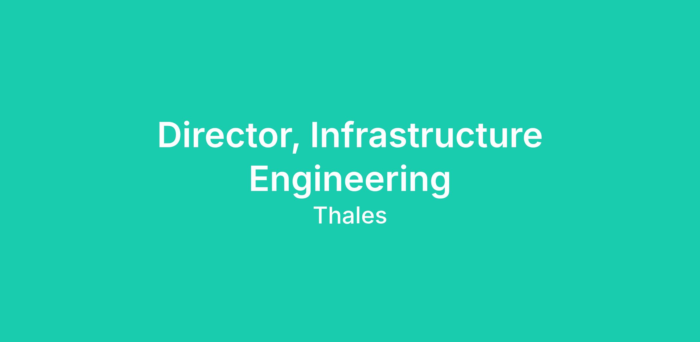 We are seeking a senior Director of Infrastructure Engineering to lead Thales’ global infrastructure teams across Site Reliability Engineering (SRE), Network Reliability Engineering (NRE) and Network Engineering & Architecture.