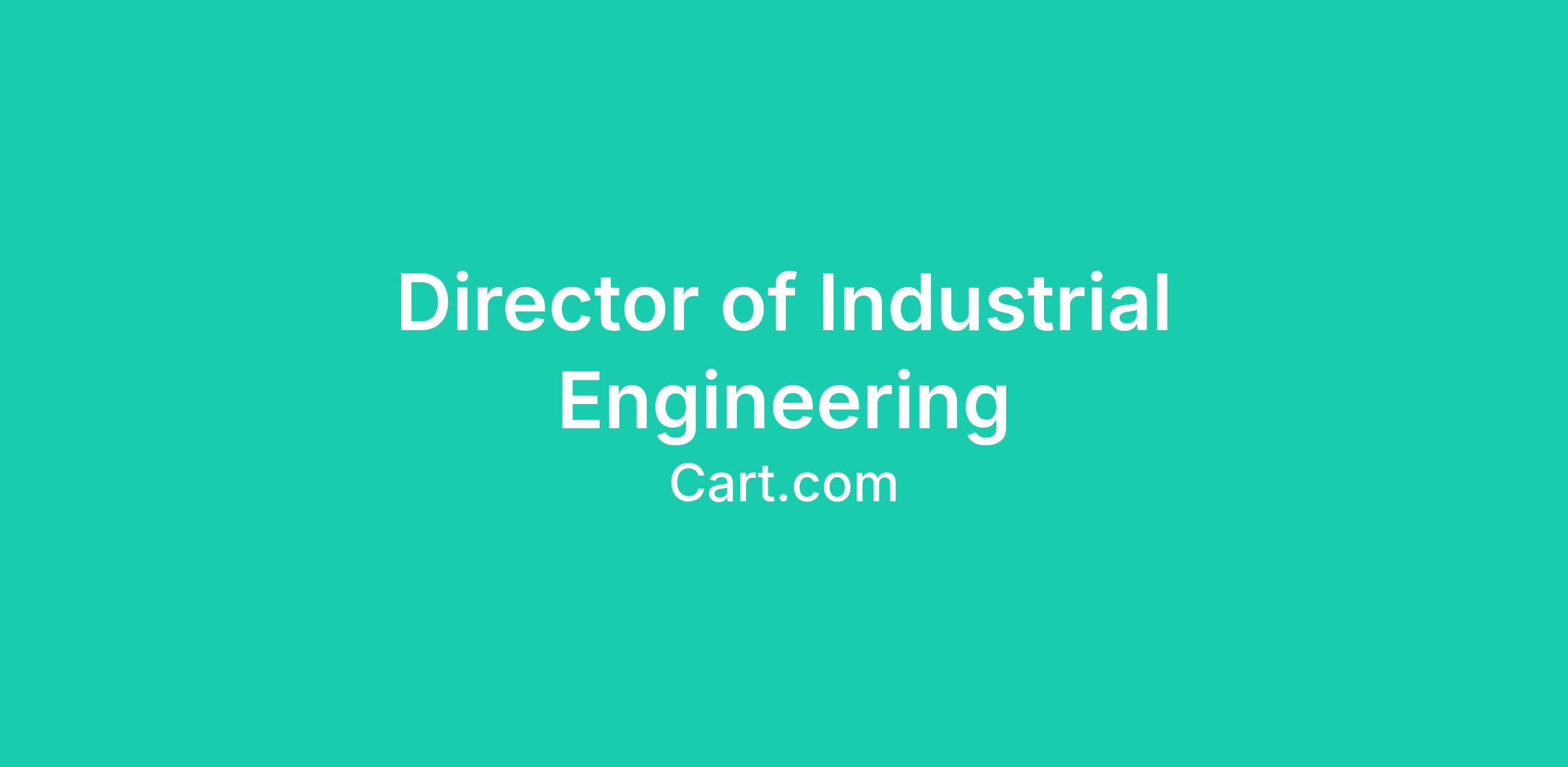 Our Director of Industrial Engineering will lead the industrial engineering team at Cart.com. In this role you will be responsible for overseeing the successful integration of new technologies and processes, ensuring the seamless onboarding of clients and partners, and optimizing our fulfillment operations.