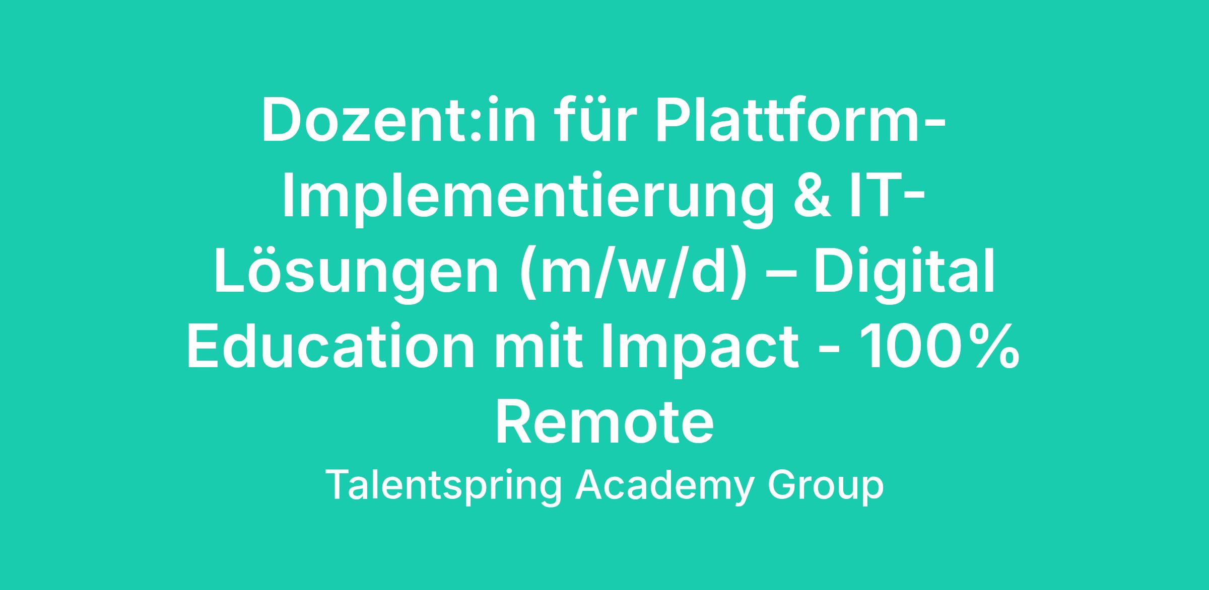 Dozent:in für Plattform-Implementierung & IT-Lösungen (m/w/d) – Digital Education mit Impact - 100% Remote