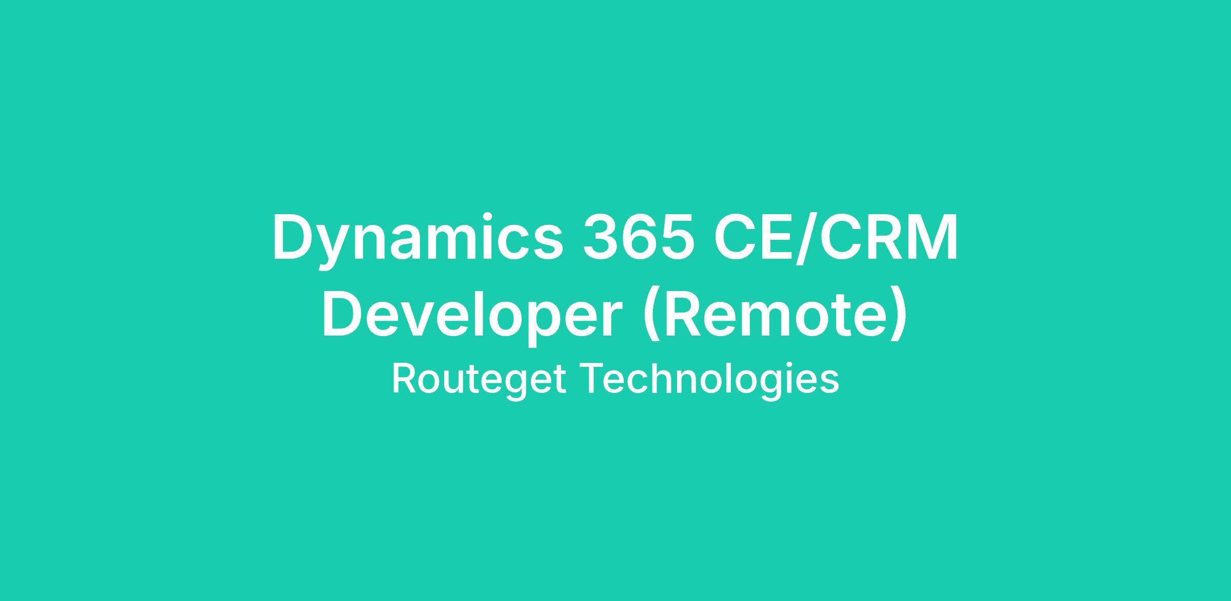 Dynamics 365 CE/CRM Developer (Remote)