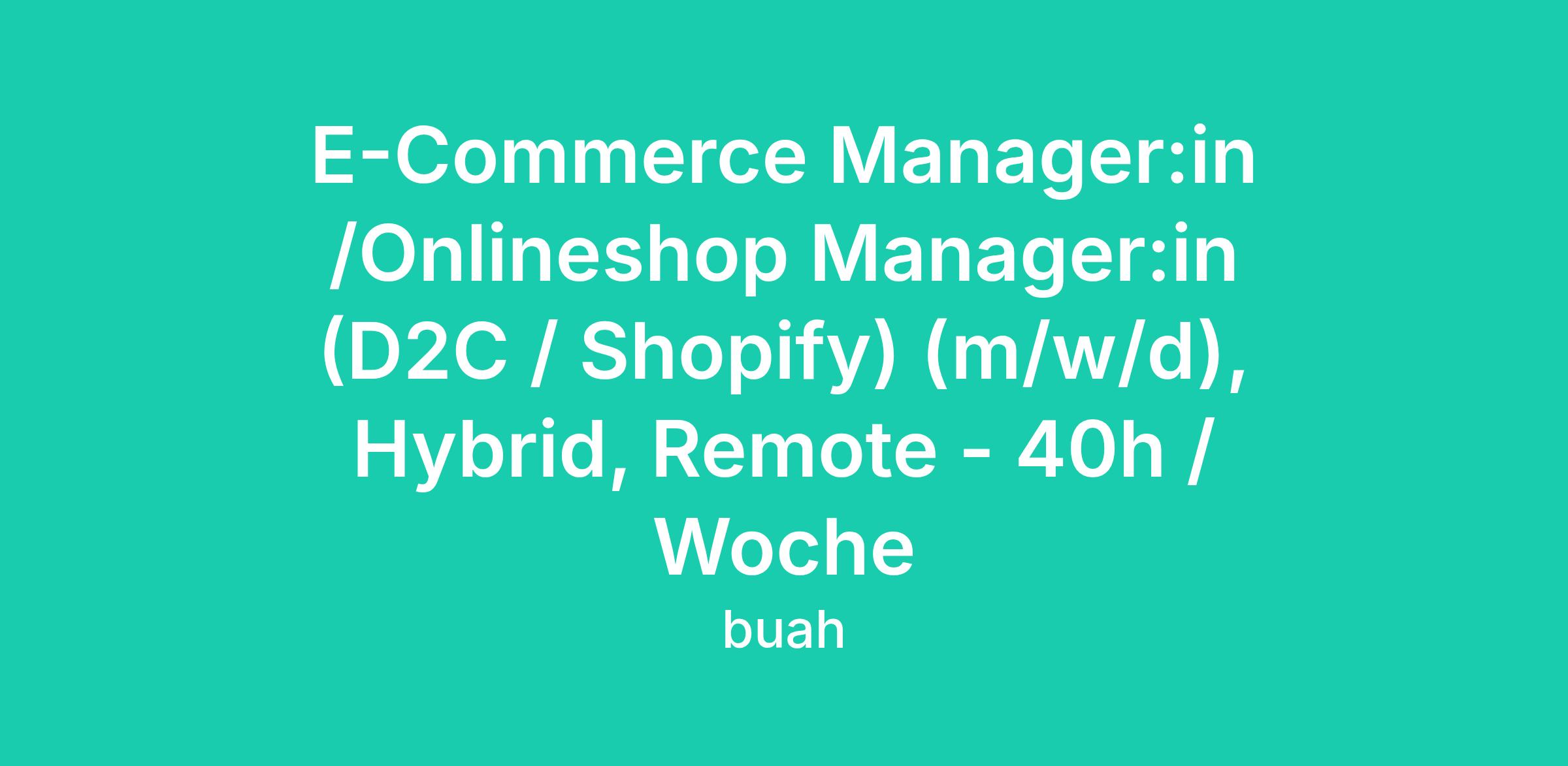 E-Commerce Manager:in /Onlineshop Manager:in (D2C / Shopify) (m/w/d), Hybrid, Remote - 40h / Woche