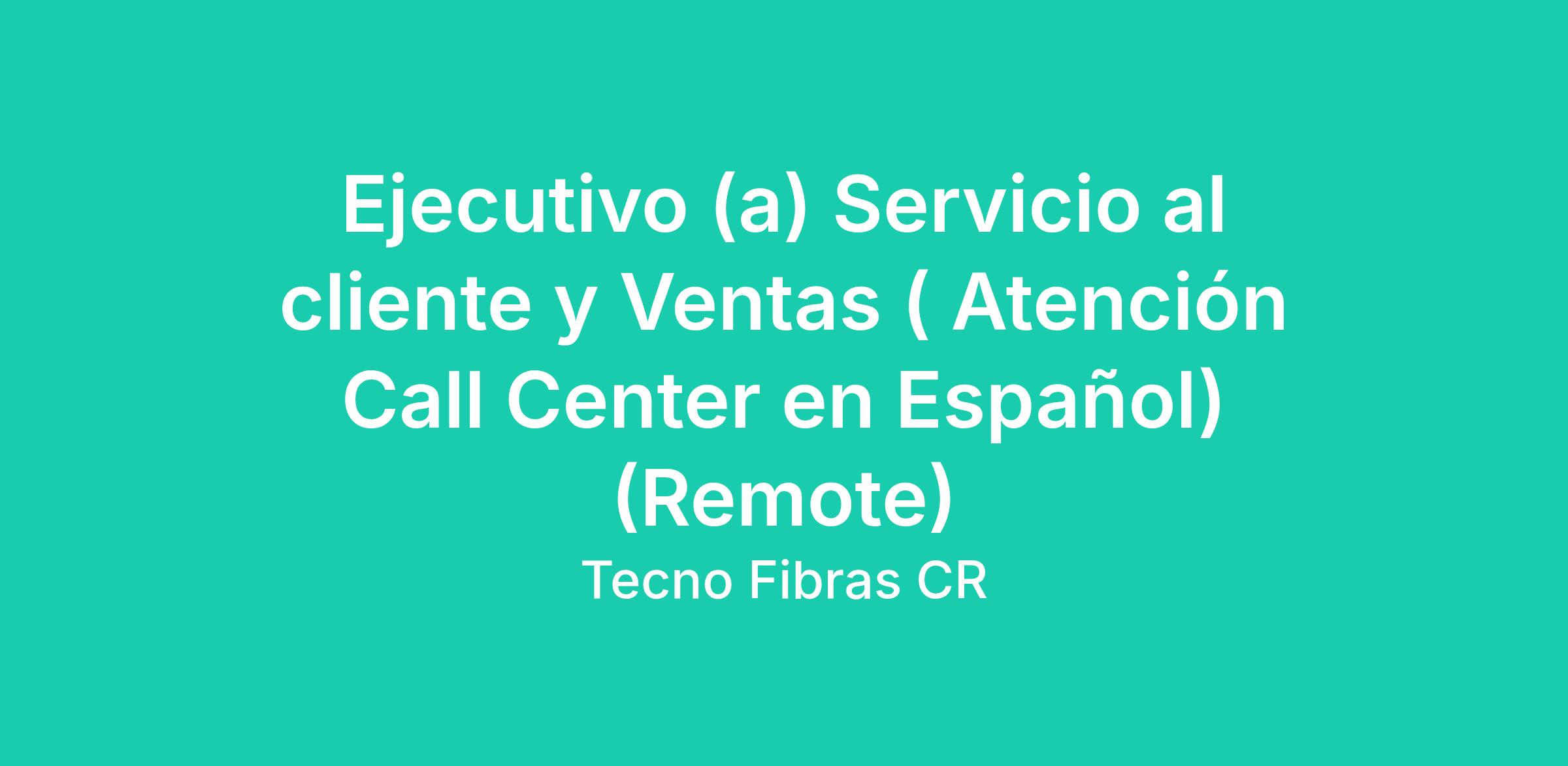Ejecutivo (a) Servicio al cliente y Ventas ( Atención Call Center en Español) (Remote)