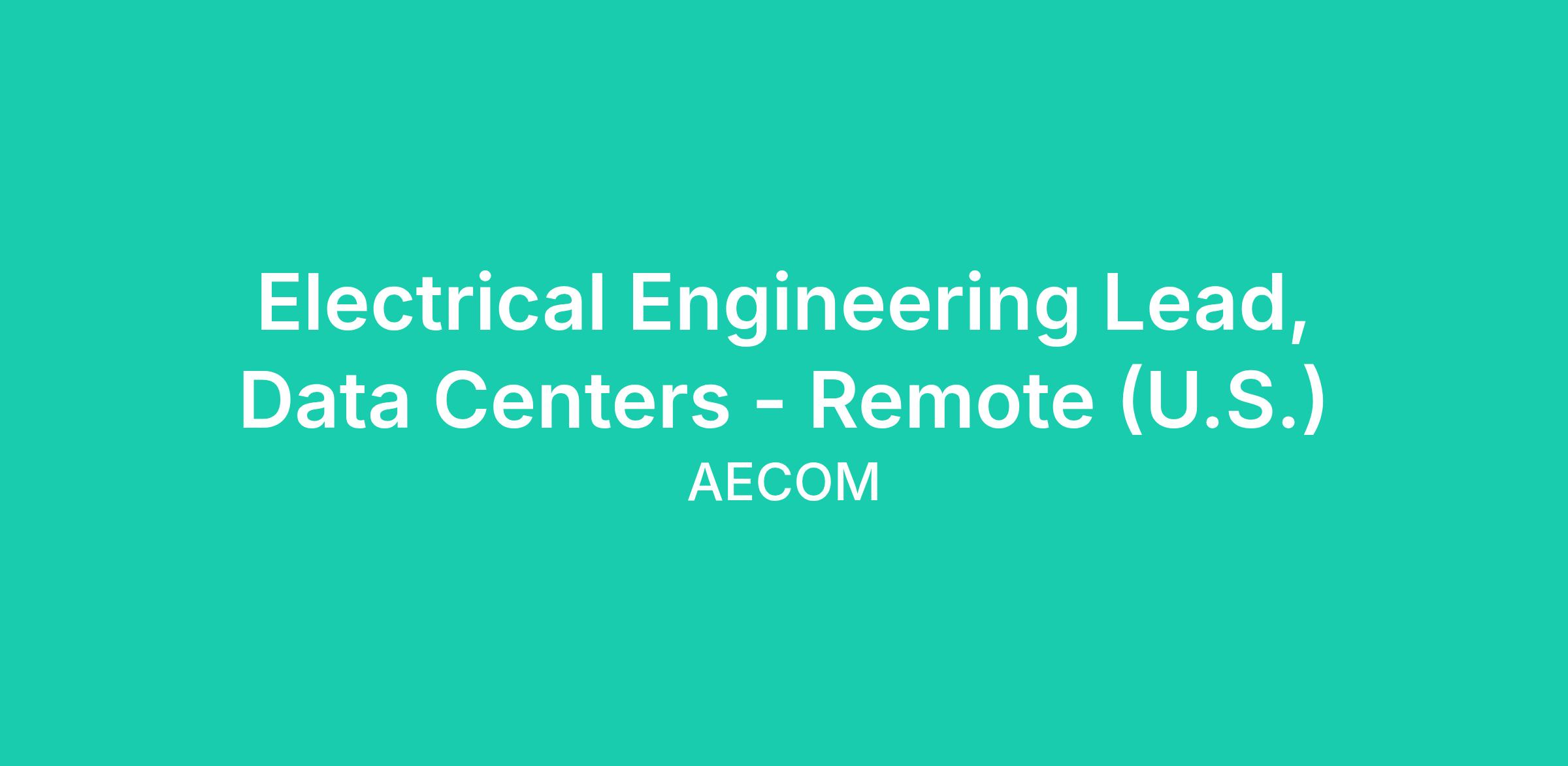 AECOM is seeking an Electrical Engineer Lead specializing in Hyper-scale Data Centers to act as Data Center Electrical Engineer Lead. The job incumbent will be responsible for designing, implementing, and maintaining electrical systems in large-scale data centers.