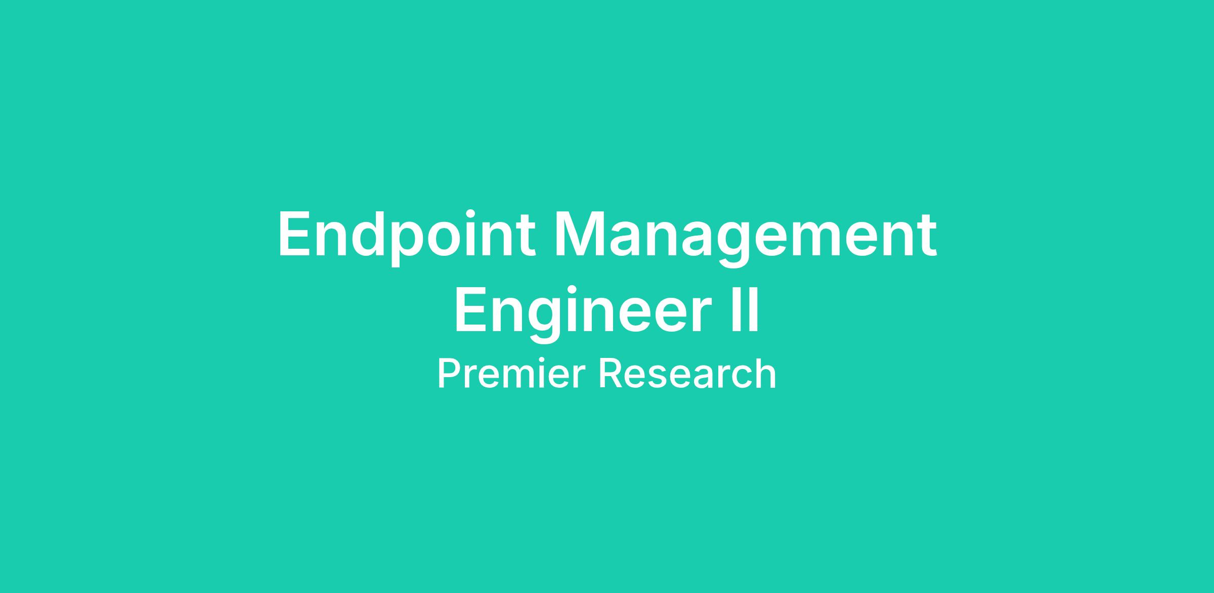 Premier Research is looking for a Endpoint Management Engineer II to join our IT & Corporate Administration team.