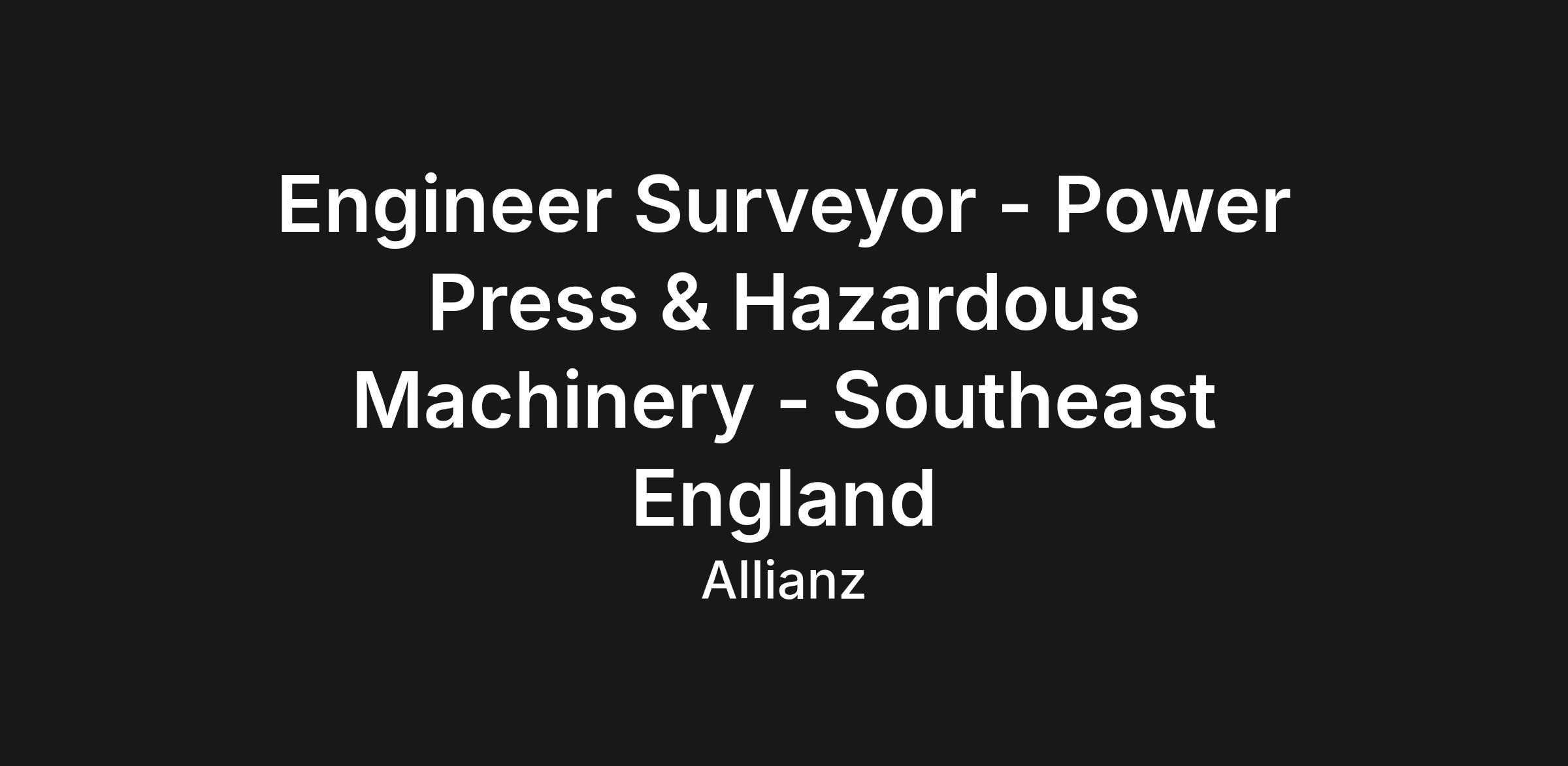 This is an exciting opportunity for an experienced and qualified Engineer Surveyor with a background in in Power Press and/or hazardous machinery maintenance to join Allianz Engineering, a division of one of the largest Inspection Service providers in the UK.