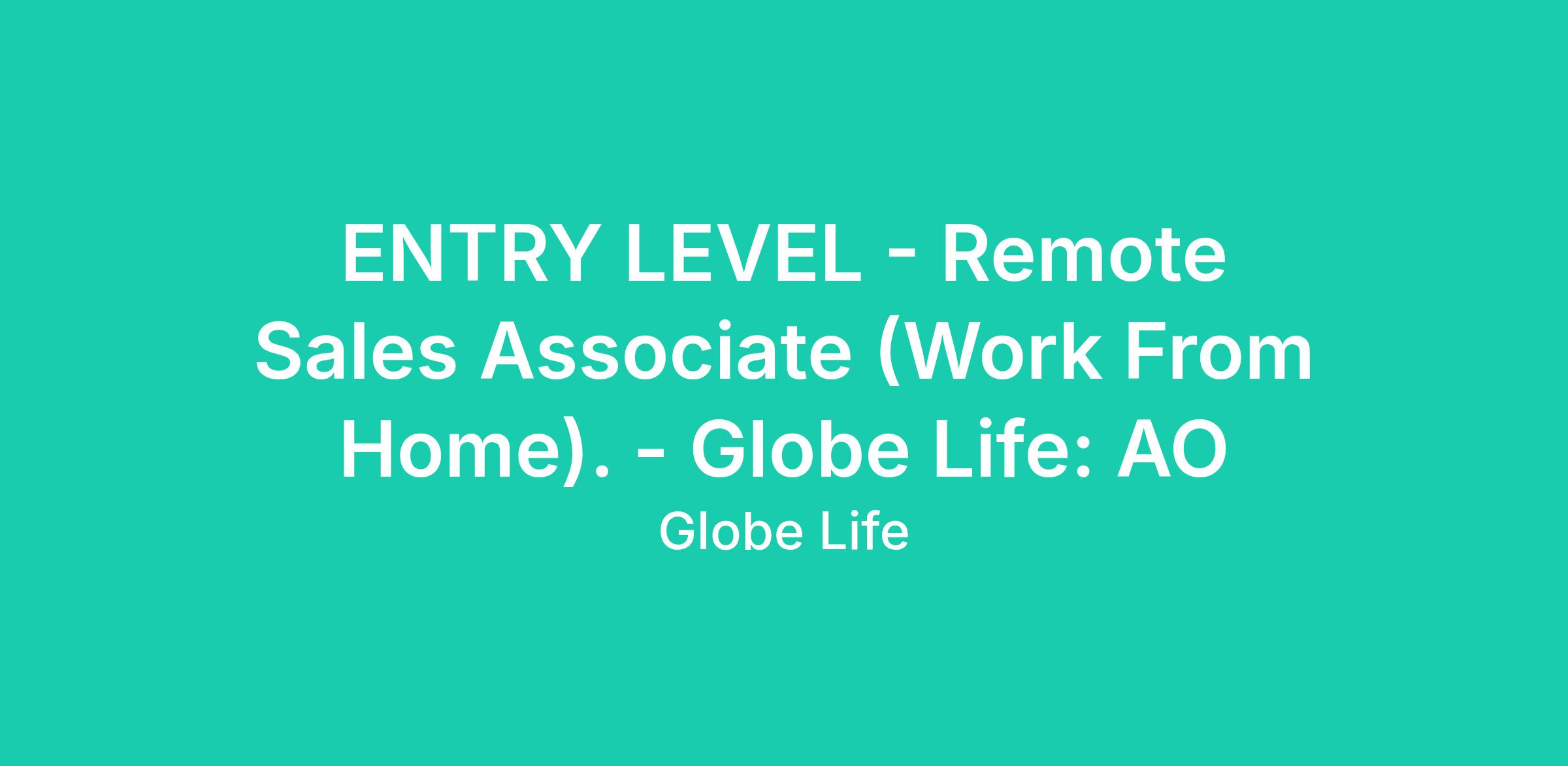 Globe Life AO is actively expanding its remote sales team and seeking motivated, coachable individuals interested in building a long-term career in remote sales, leadership, and management.