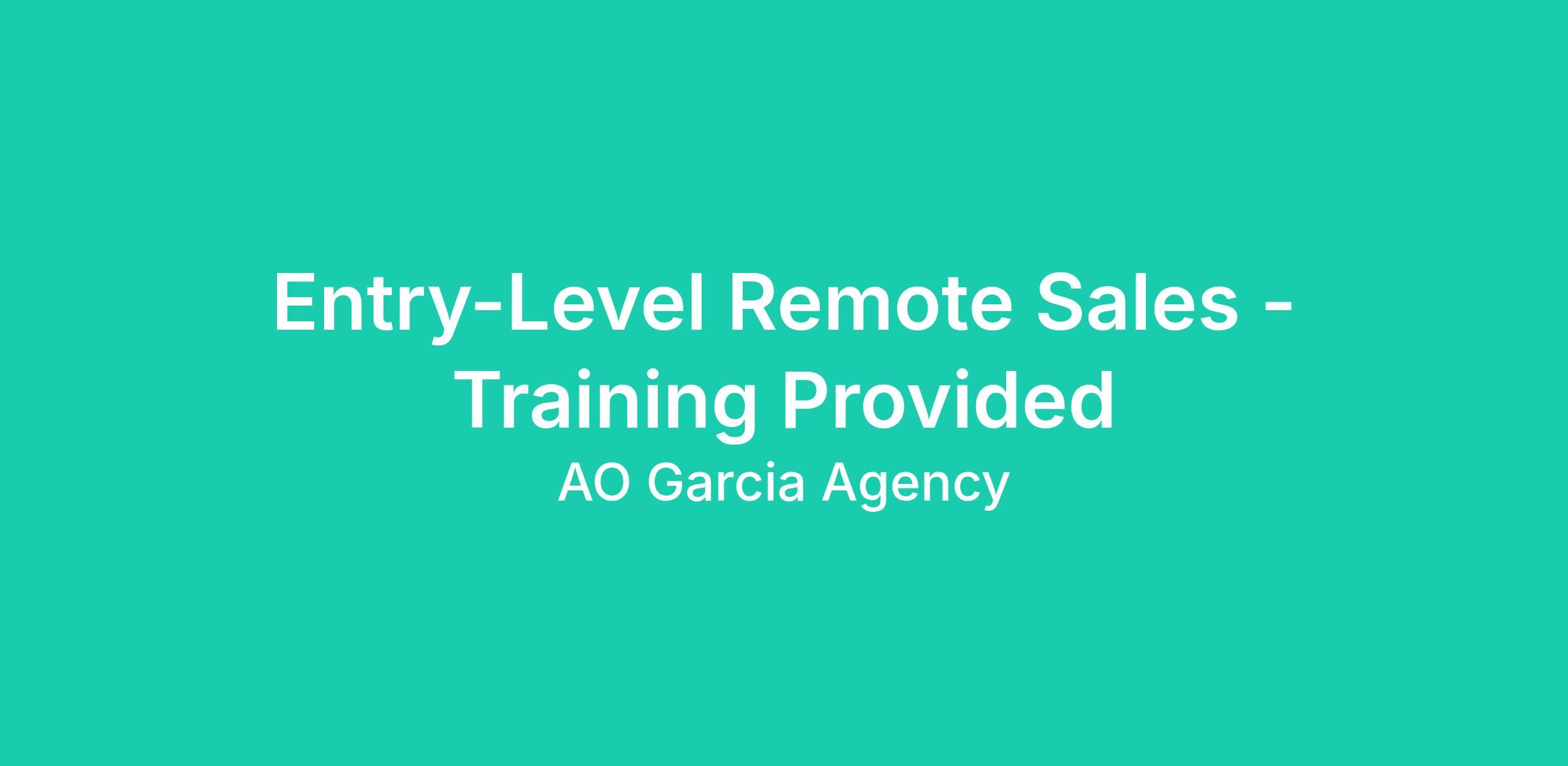 Remote sales opportunity. Entry-level applicants welcome. Training provided. Commission-based income.