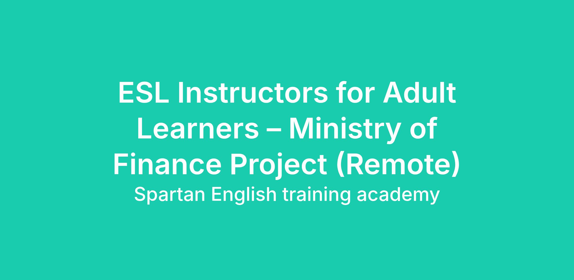 ESL Instructors for Adult Learners – Ministry of Finance Project (Remote)