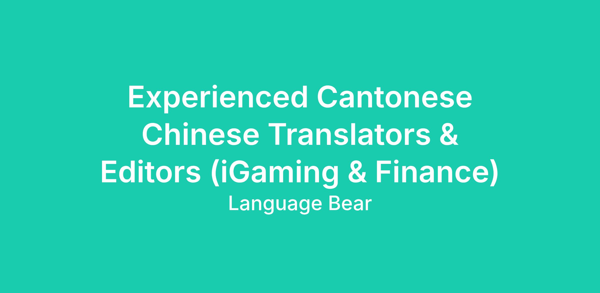 Your task includes translating from English to Cantonese and editing content related to general Finance and the Gambling Industry (Casino & Sports Betting). We are looking for a long-term partnership as we are currently expanding the Cantonese Chinese team we've been working with since Language Bear has been founded.