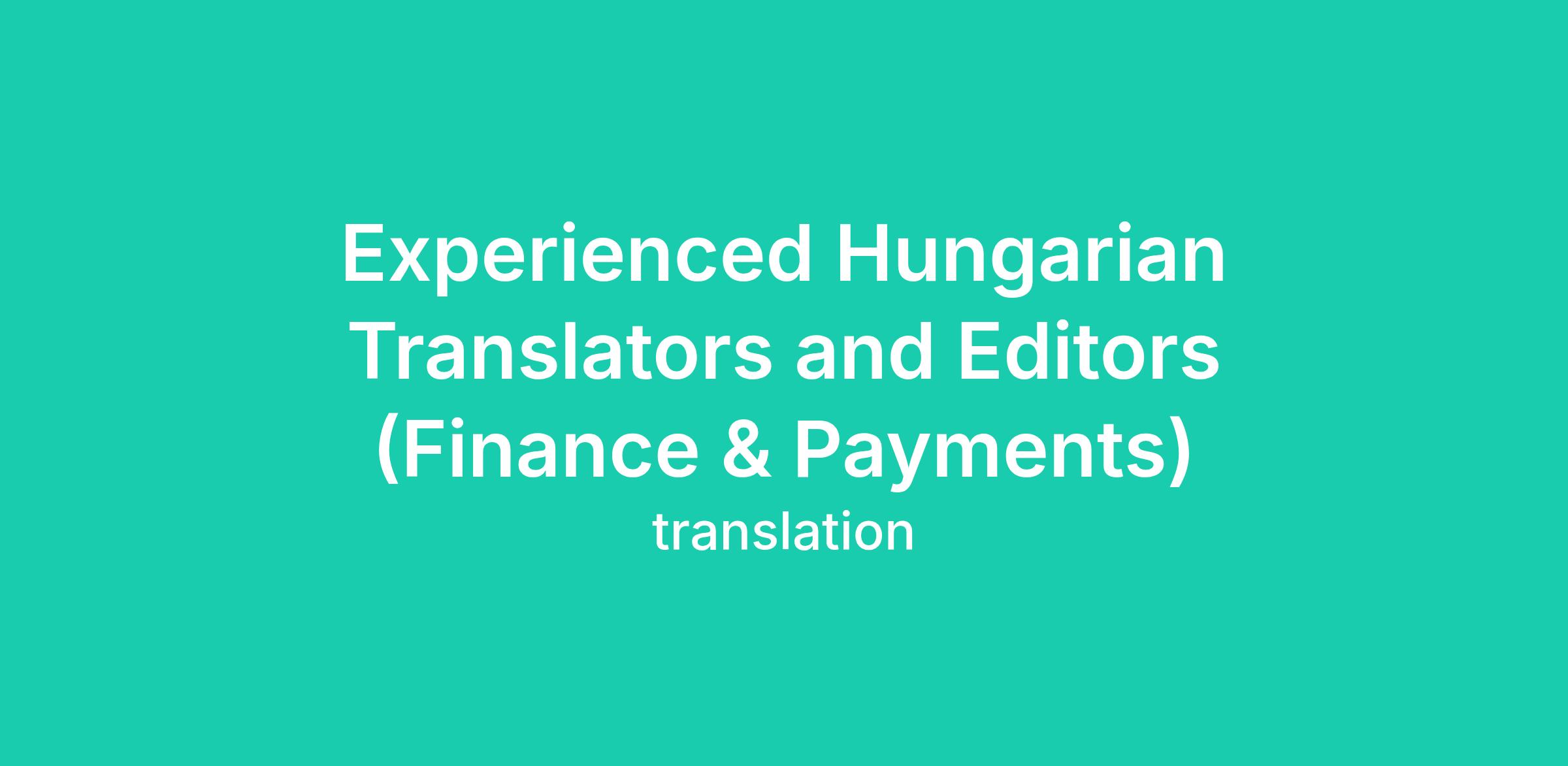 For several upcoming, high-scale projects, we are looking to hire remotely, Hungarian Translators and Editors for tasks related to Finance&Payments.