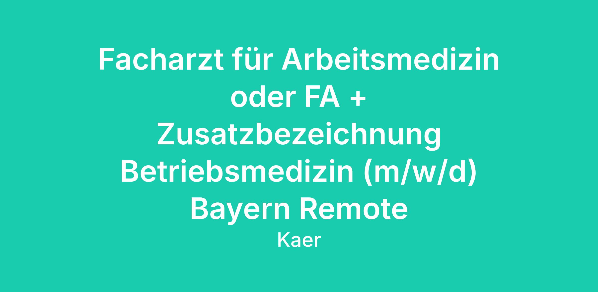 Facharzt für Arbeitsmedizin oder FA + Zusatzbezeichnung Betriebsmedizin (m/w/d) Bayern Remote