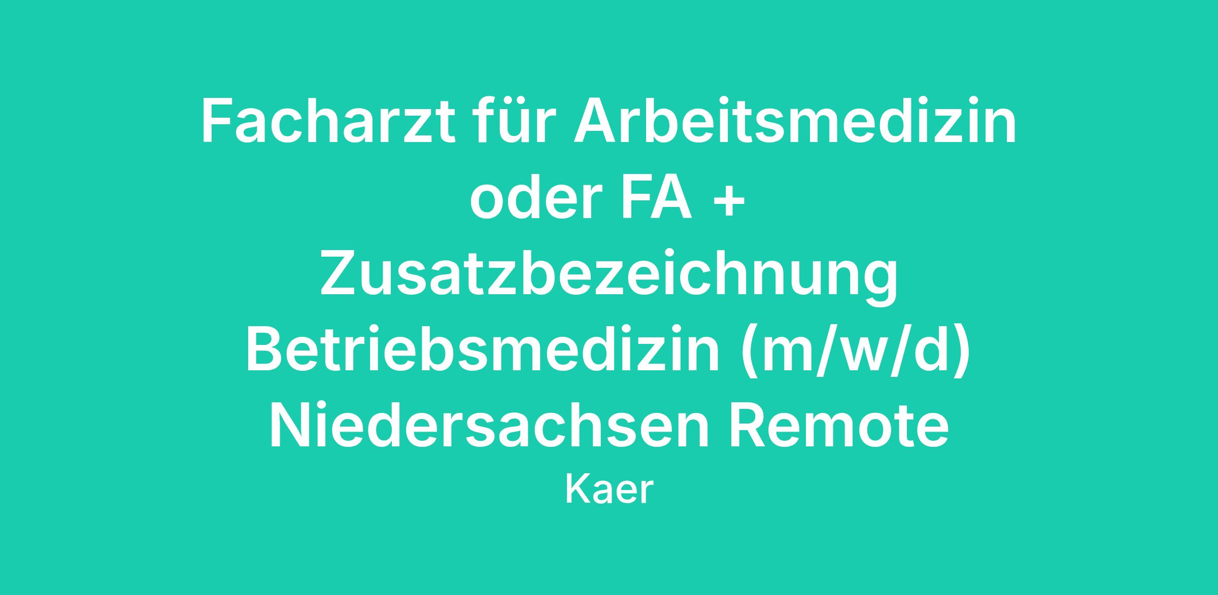 Facharzt für Arbeitsmedizin oder FA + Zusatzbezeichnung Betriebsmedizin (m/w/d) Niedersachsen Remote