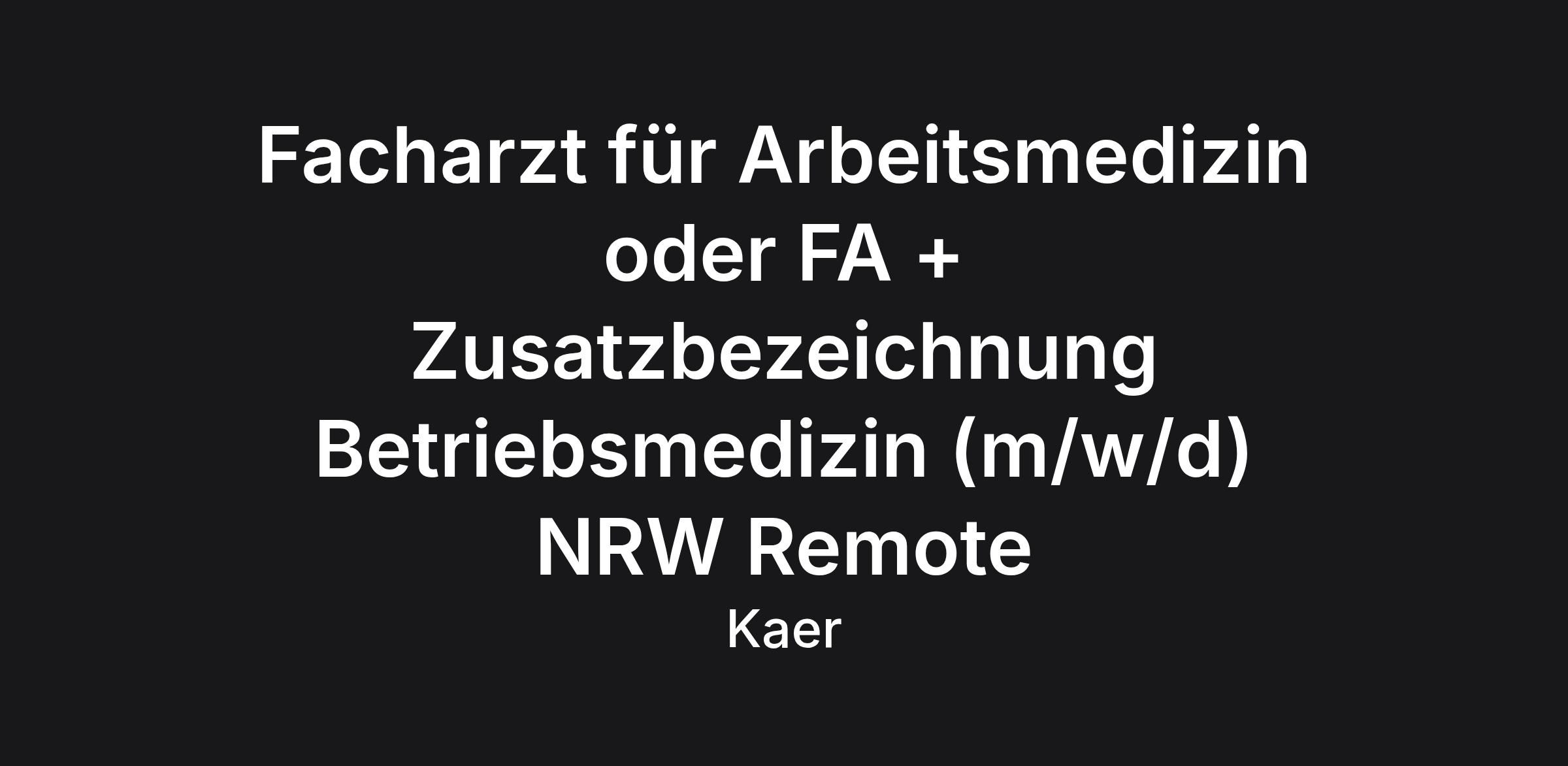 Facharzt für Arbeitsmedizin oder FA + Zusatzbezeichnung Betriebsmedizin (m/w/d) NRW Remote