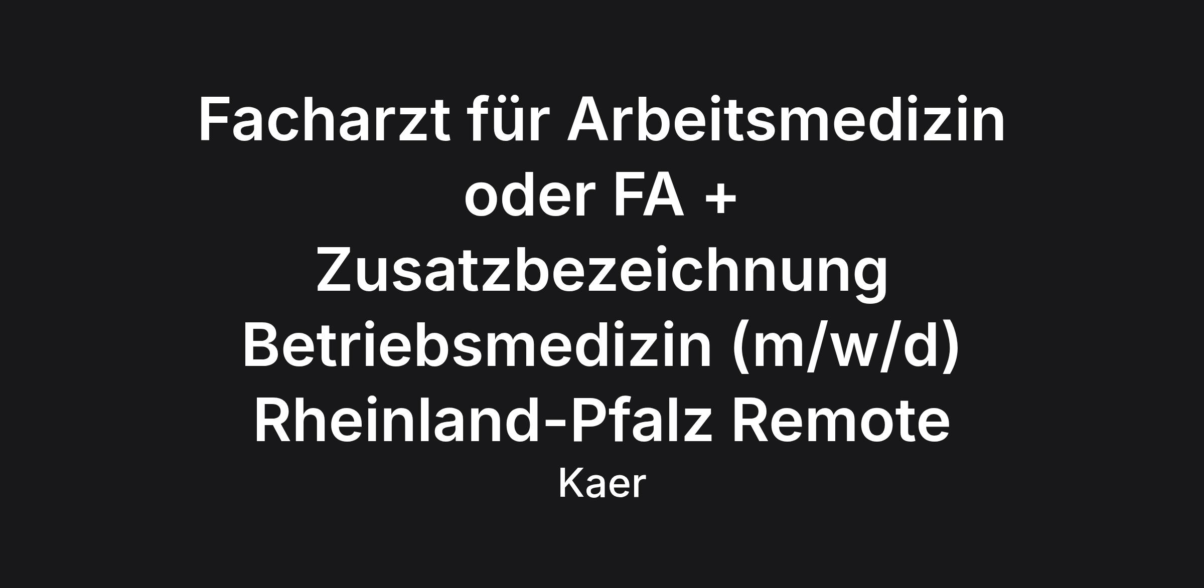 Facharzt für Arbeitsmedizin oder FA + Zusatzbezeichnung Betriebsmedizin (m/w/d) Rheinland-Pfalz Remote