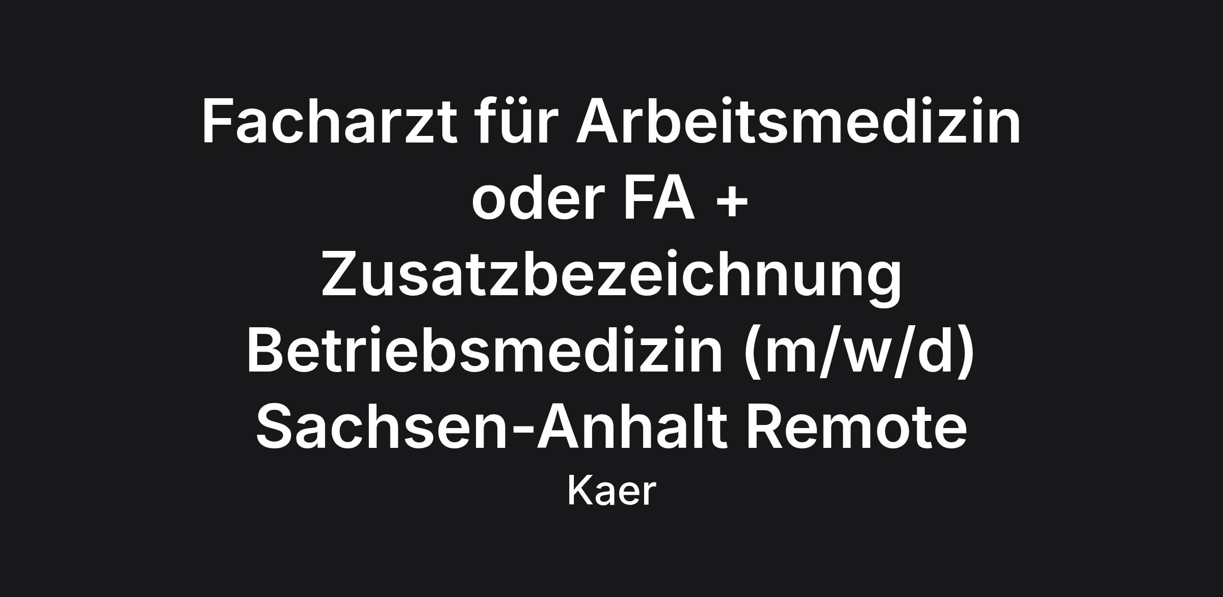Facharzt für Arbeitsmedizin oder FA + Zusatzbezeichnung Betriebsmedizin (m/w/d) Sachsen-Anhalt Remote