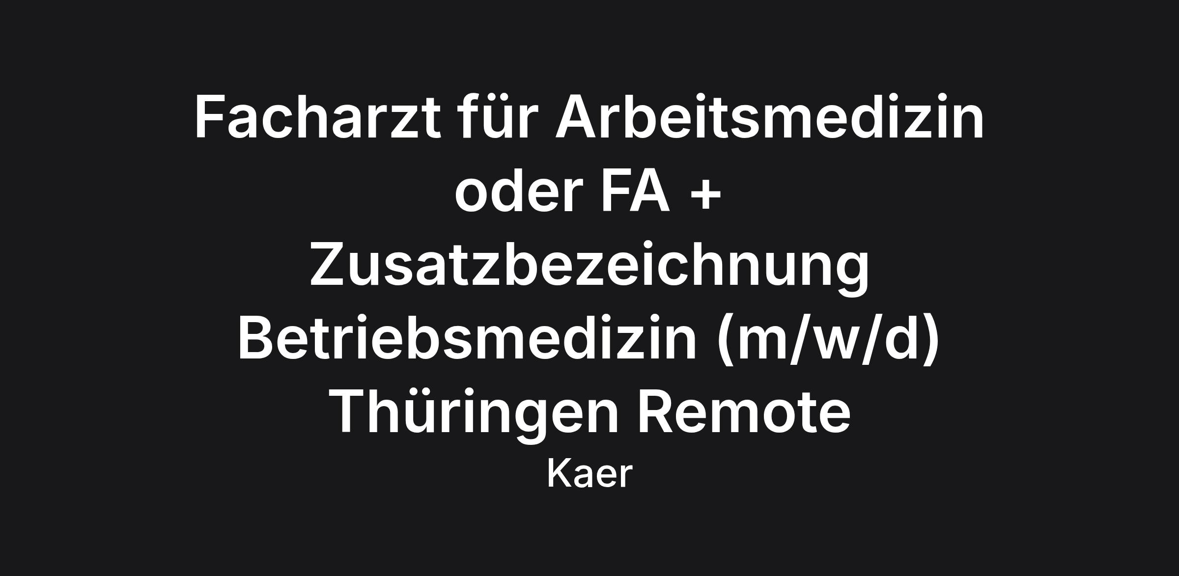 Facharzt für Arbeitsmedizin oder FA + Zusatzbezeichnung Betriebsmedizin (m/w/d) Thüringen Remote