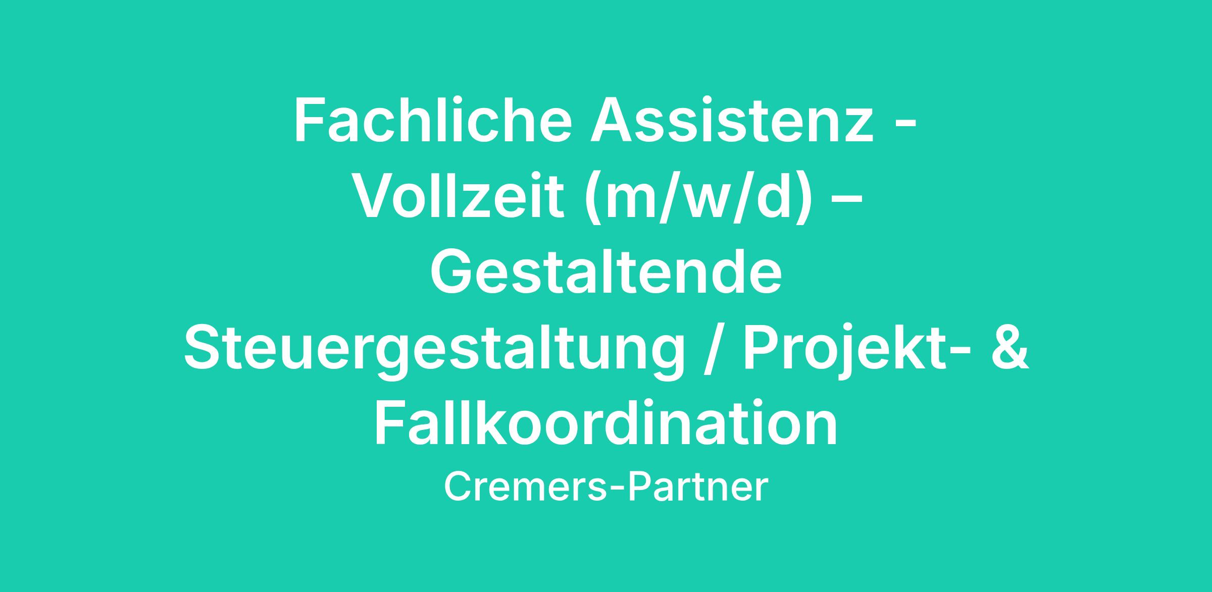 Fachliche Assistenz - Vollzeit (m/w/d) – Gestaltende Steuergestaltung / Projekt- & Fallkoordination