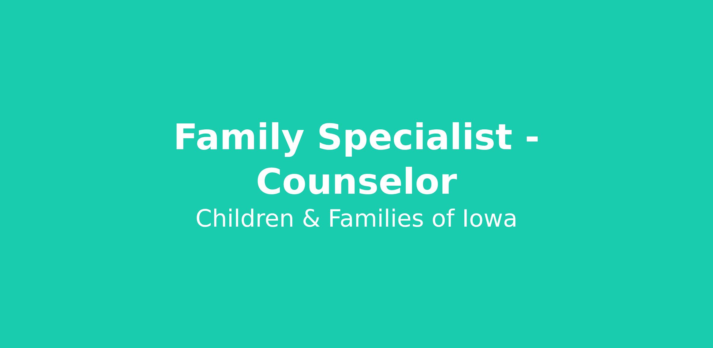 At Children & Families of Iowa, our mission is simple but powerful: Restore Hope. Build Futures. Change Lives. As a Family Specialist – Counselor, you will play a key role in supporting children and families as they work through challenges and build stronger futures together.