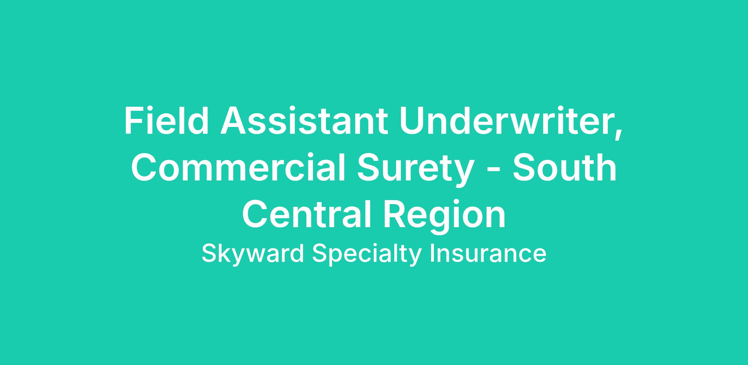 This position will provide underwriting and administrative support to the South Central Commercial Surety Team.