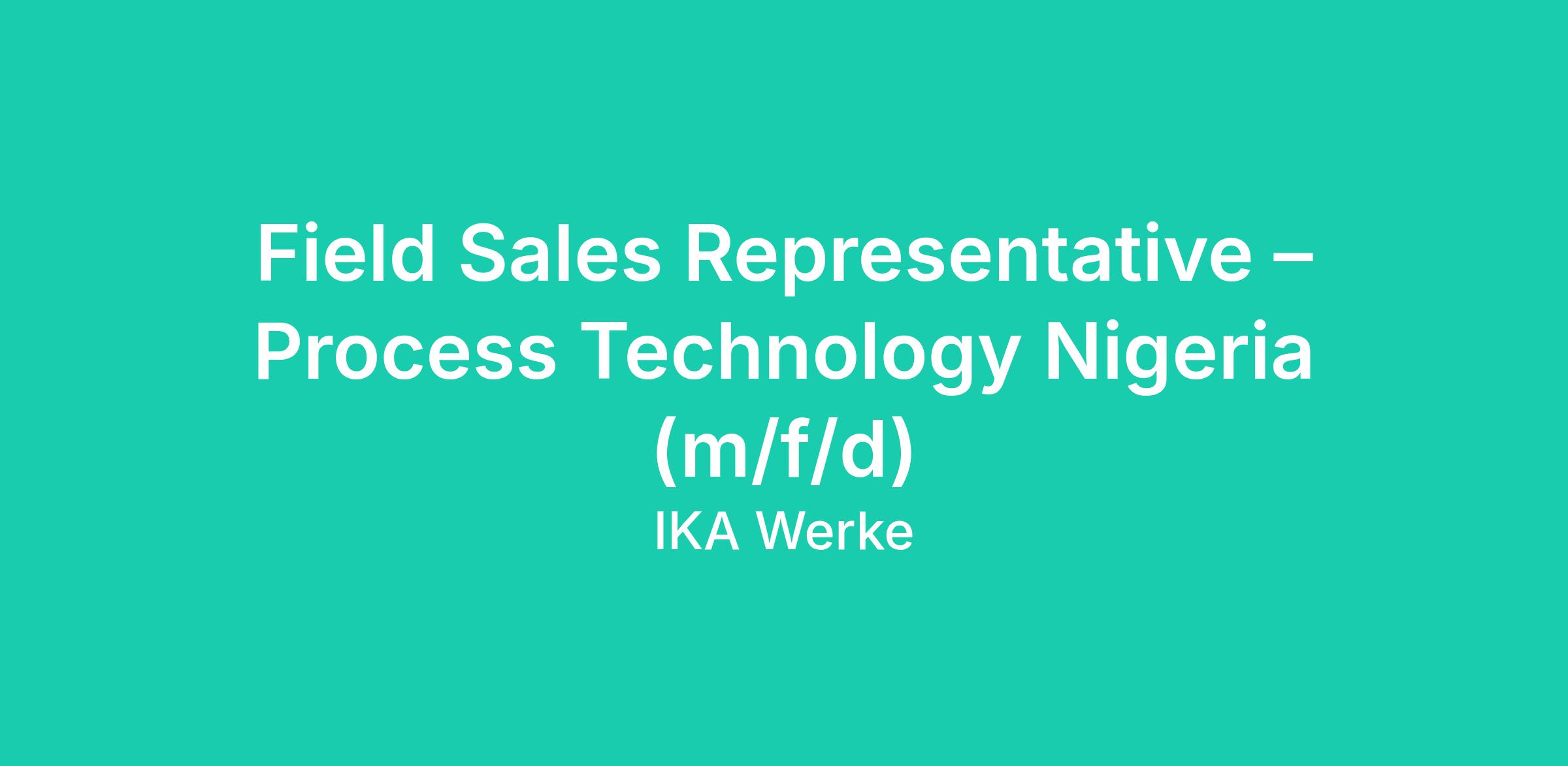 We are seeking an experienced and highly motivated Field Sales Representative (m/f/d) to join our Process Technology team in Africa. The position will be based in Nigeria, and the holder will act as a local point of customer contact, handle customer inquiries, visit existing and new customers, generate sales opportunities, close revenue deals and grow the IKA Process Technology market share within the territory.