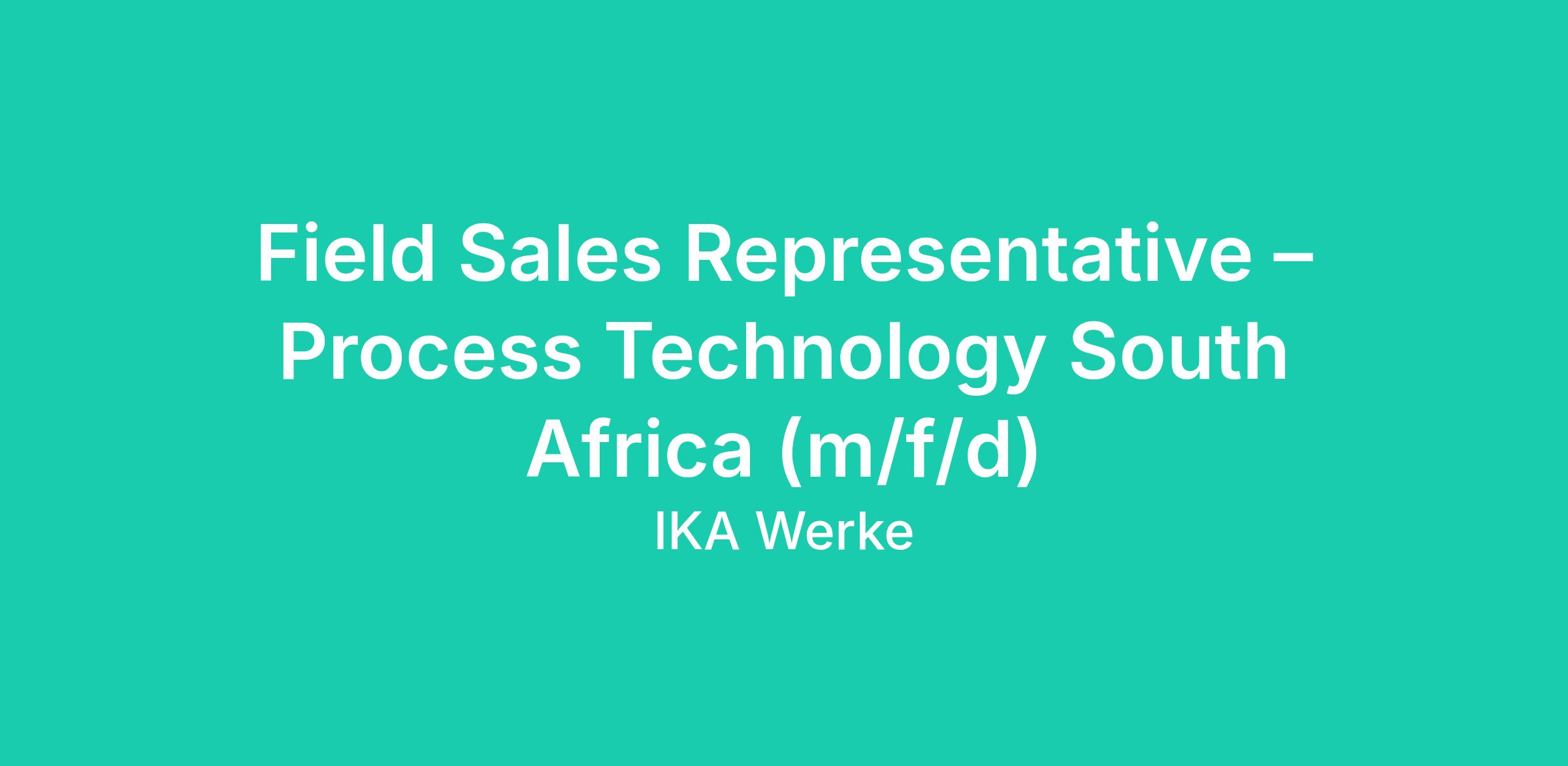 We are seeking an experienced and highly motivated Field Sales Representative (m/f/d) to join our Process Technology team in Africa. The position will be based in South Africa, and the holder will act as a local point of customer contact, handle customer inquiries, visit existing and new customers, generate sales opportunities, close revenue deals and grow the IKA Process Technology market share within the territory.