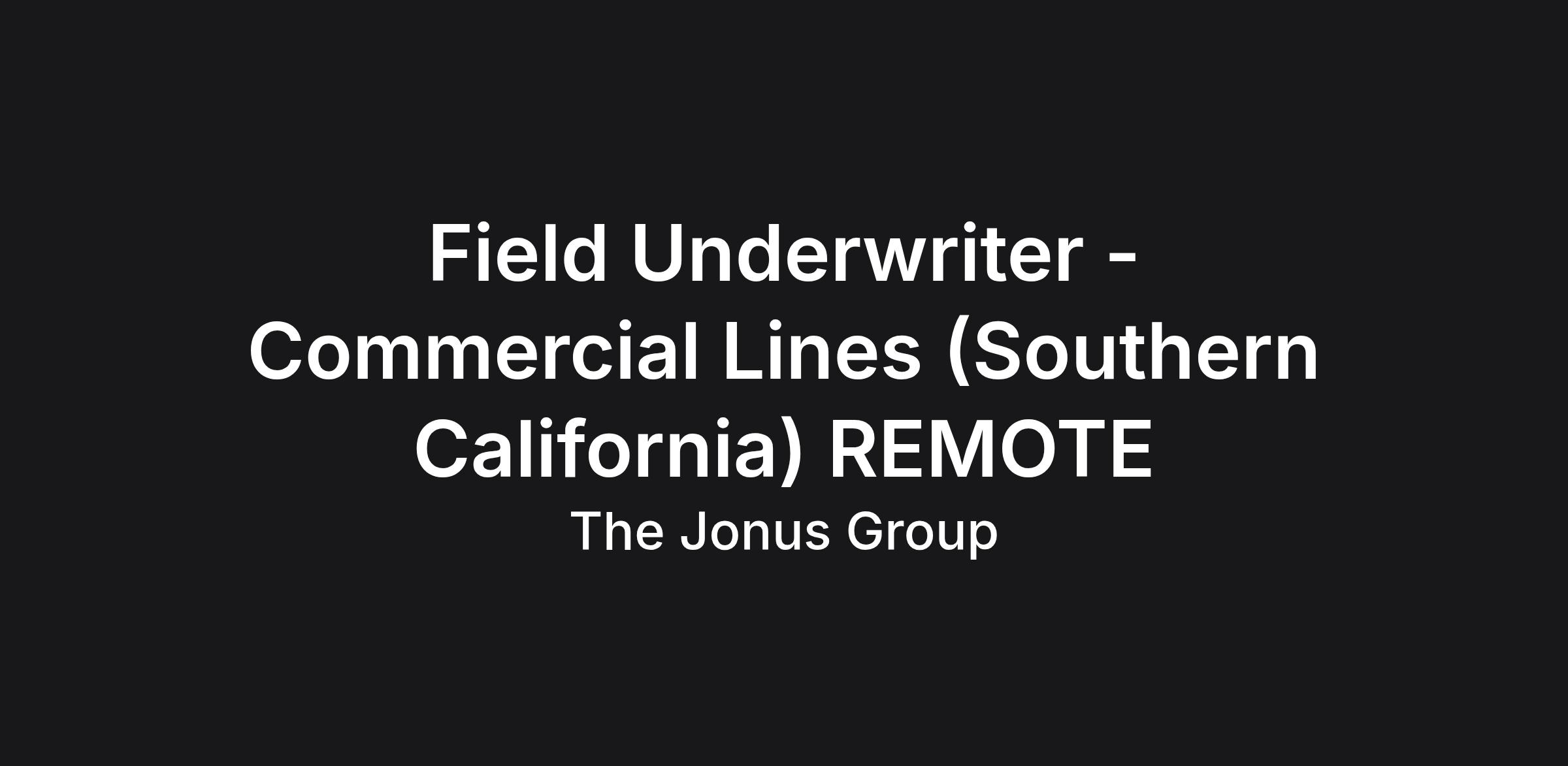 Senior Commercial Underwriter - Southern California (REMOTE)