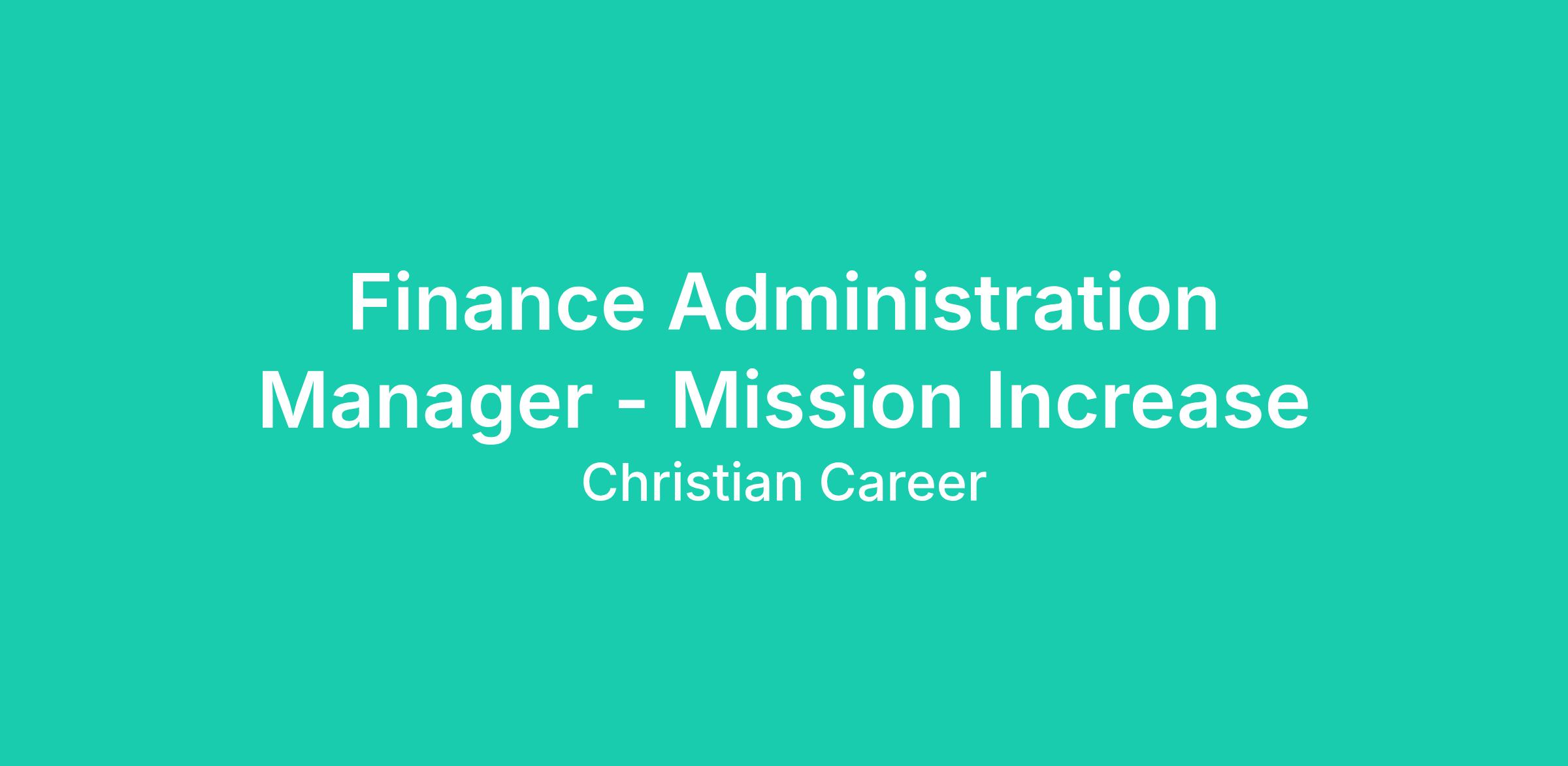 Finance Administration Manager - Mission IncreaseReports to: CFO