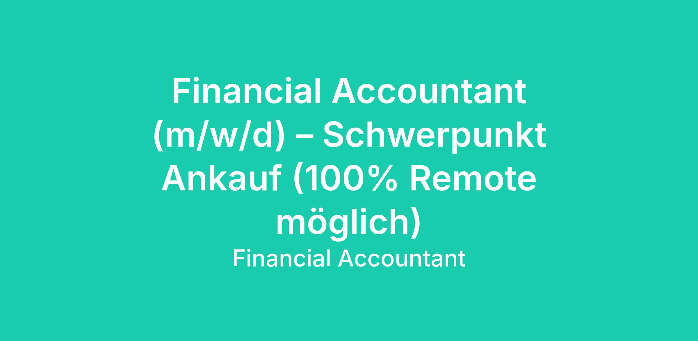 Financial Accountant (m/w/d) – Schwerpunkt Ankauf (100% Remote möglich)