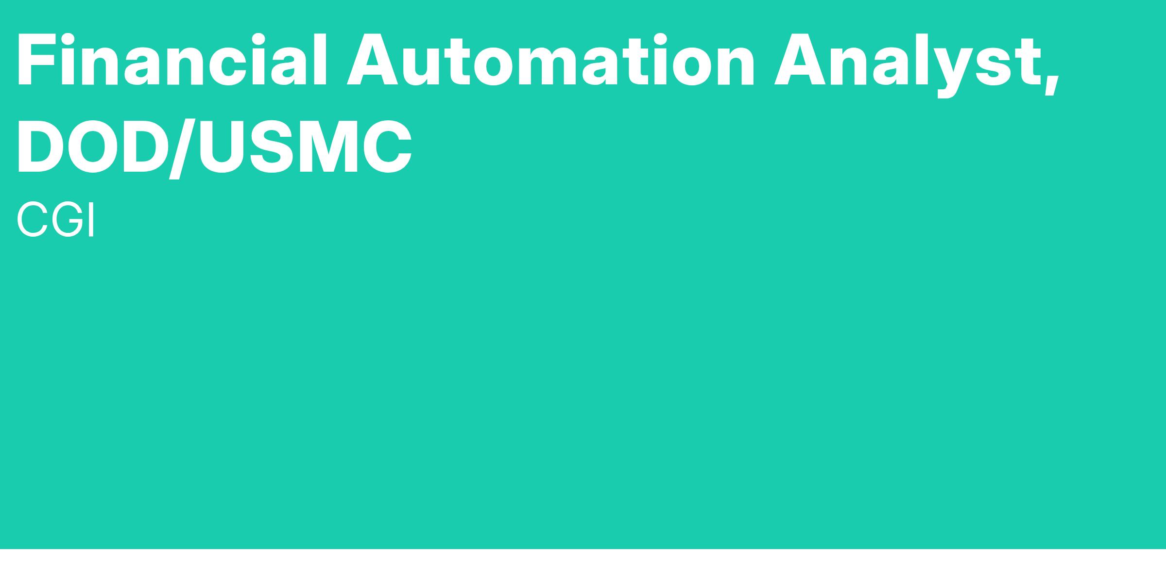 The Financial Automation analyst will interface with internal and external stakeholders, contributing significantly to department goals and planning efforts, and coordinate projects within a Major Subordinate Command Marine Corps staff.