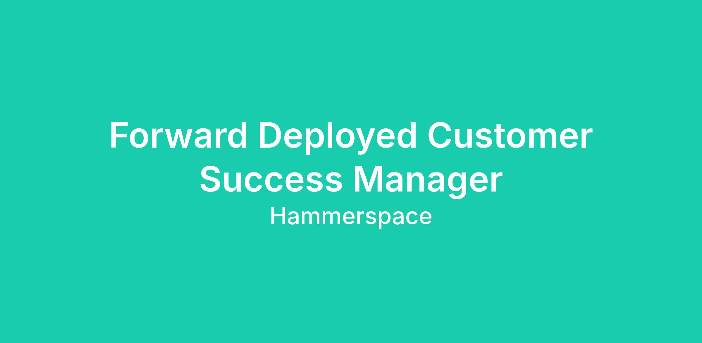 Hammerspace is looking for a Forward Deployed CSM to own the strategic relationship for our most prestigious "Lighthouse" accounts. You are the "Air Traffic Controller" for a high-impact success pod, partnering directly with an embedded Forward Deployed Engineer (FDE) to ensure our customers don't just use our software, but achieve transformative business outcomes.