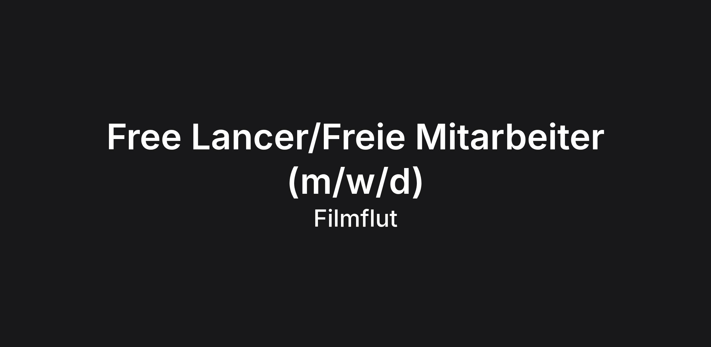 Free Lancer/Freie Mitarbeiter (m/w/d)