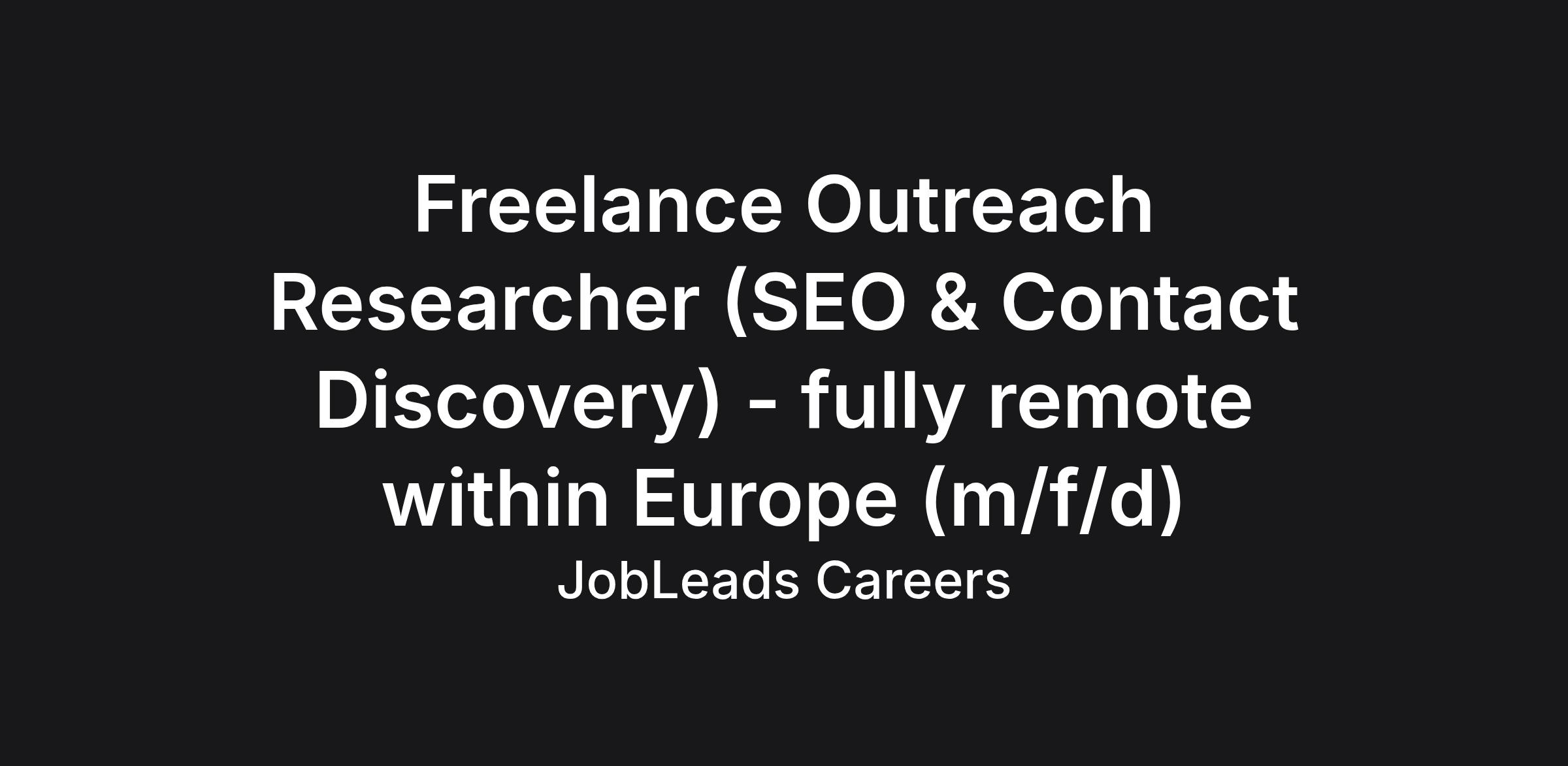 Freelance Outreach Researcher (SEO & Contact Discovery) - fully remote within Europe (m/f/d)