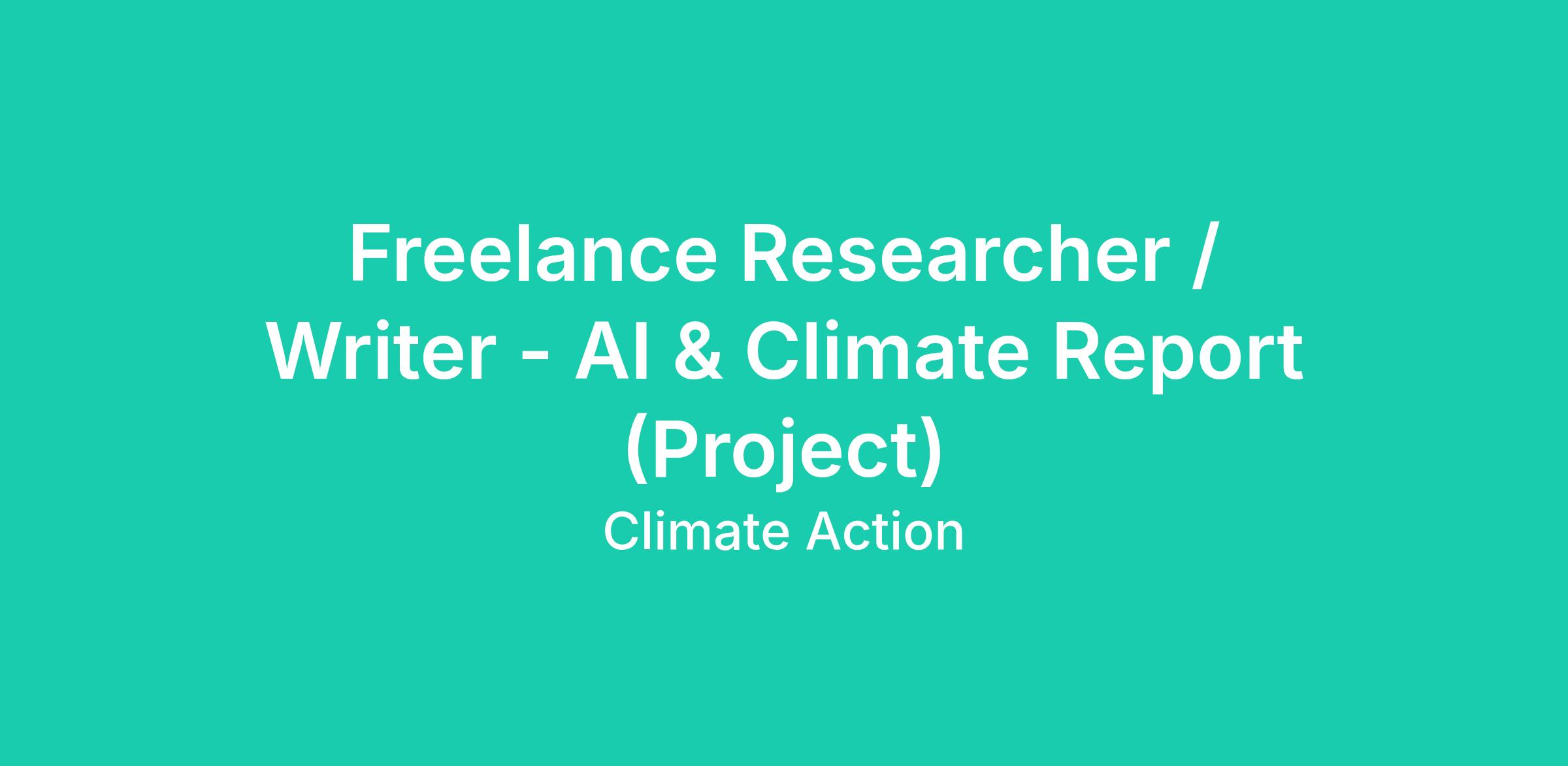 DescriptionWe’re looking for a freelance researcher/writer to support the development of a 20,000-word report for the Climate Action Coalition’s AI Taskforce exploring the role of AI in the energy transition.