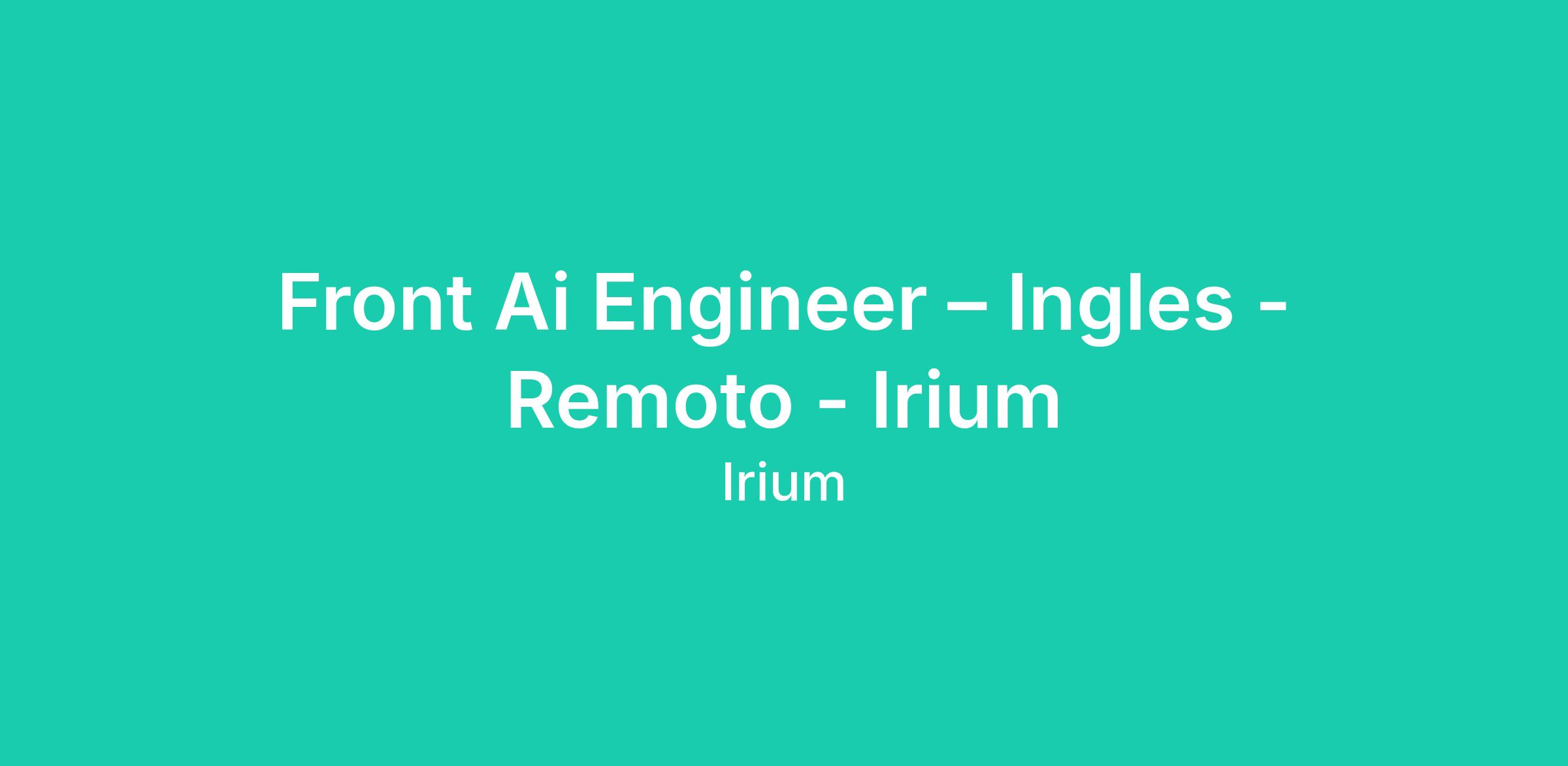 Front Ai Engineer – Ingles - Remoto - Irium